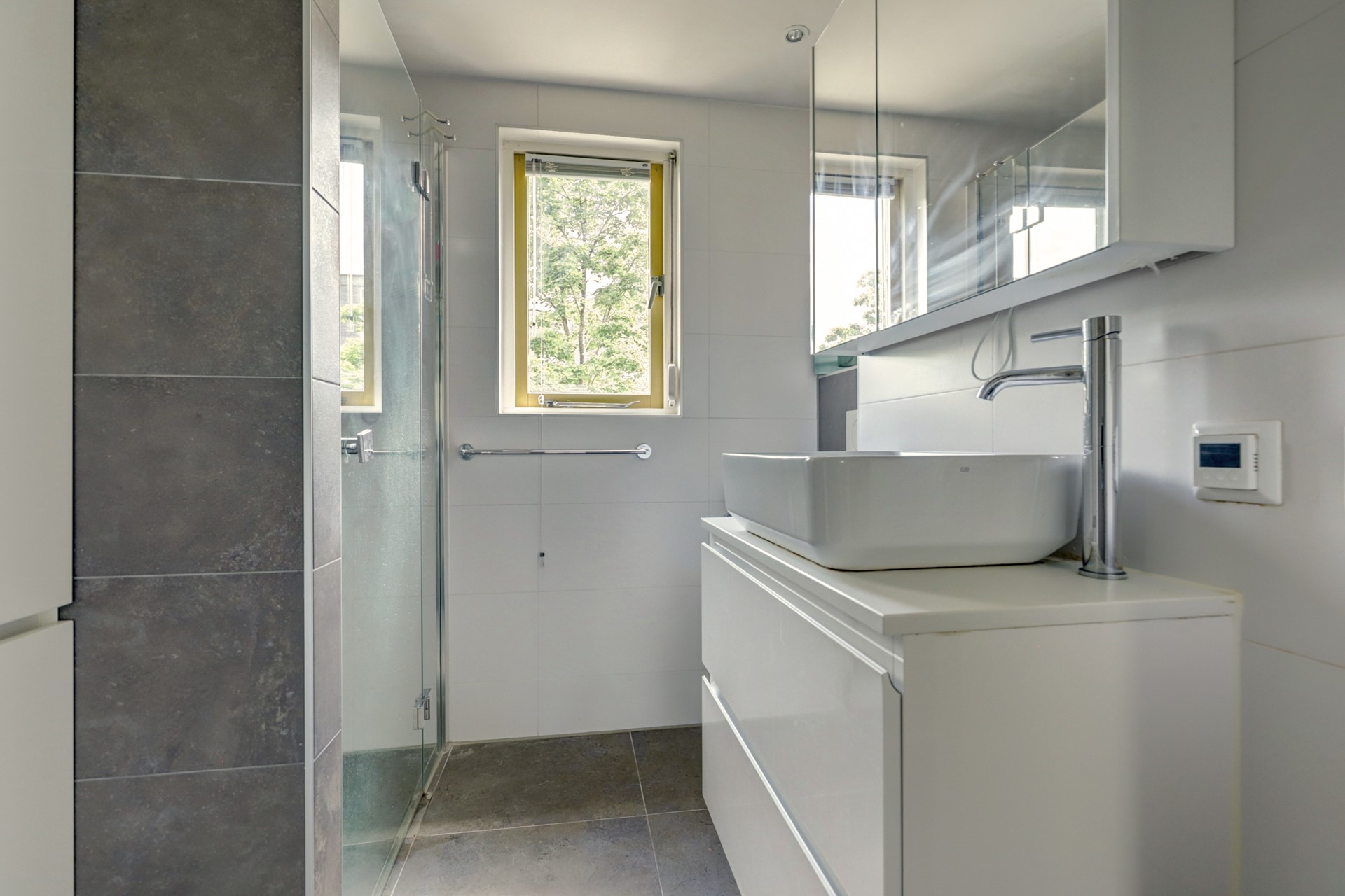 -Moderne badkamer met vloerverwarming.