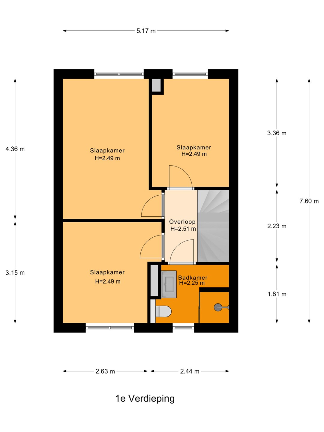 -Drie slaapkamers op de eerste verdieping;