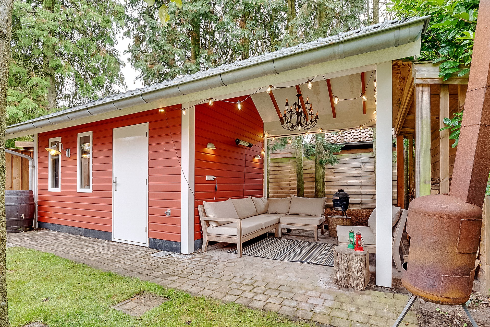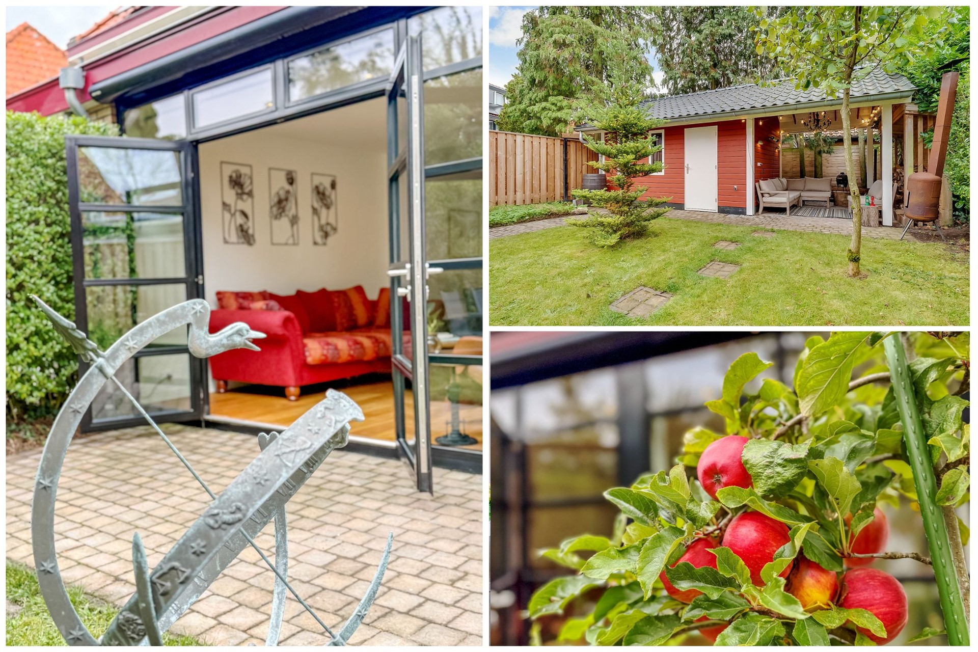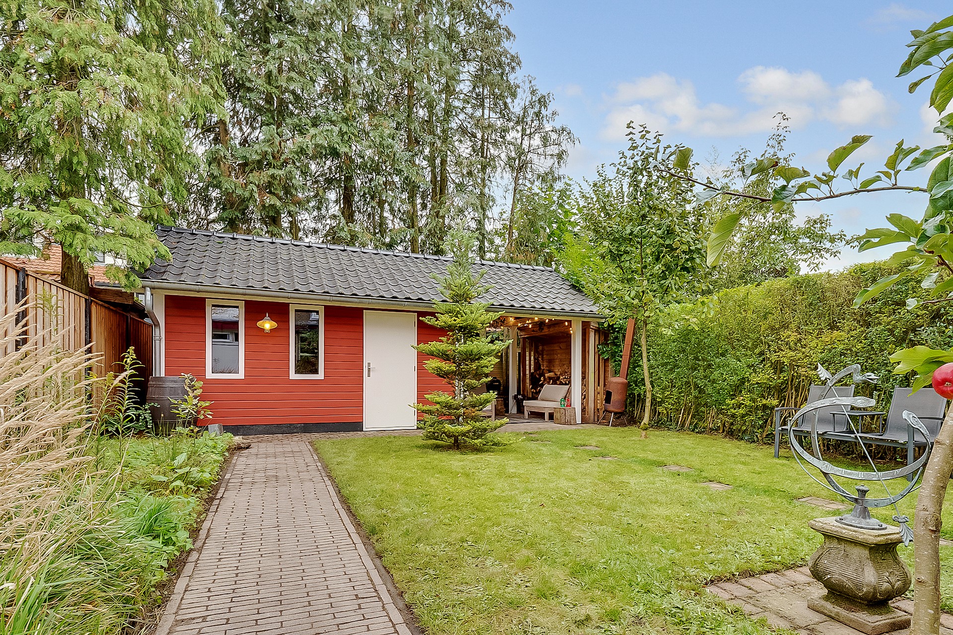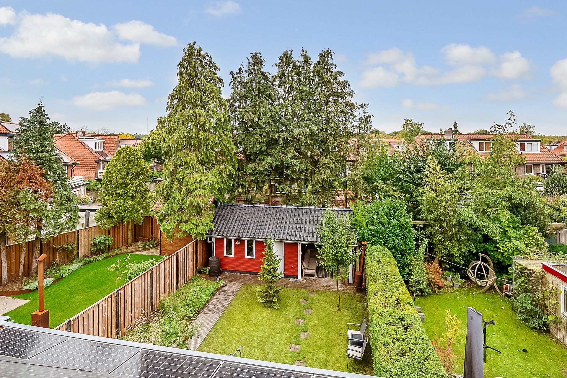 De diepe, zonnige achtertuin (zuidligging) is fraai aangelegd met gazon en borders. Achterin de tuin staat een geïsoleerde berging met naastgelegen overkapping: een heerlijke plek om in de zomer te genieten van het buitenleven. Aan de voorzijde beschikt de woning over een oprit met plaats voor twee auto’s.