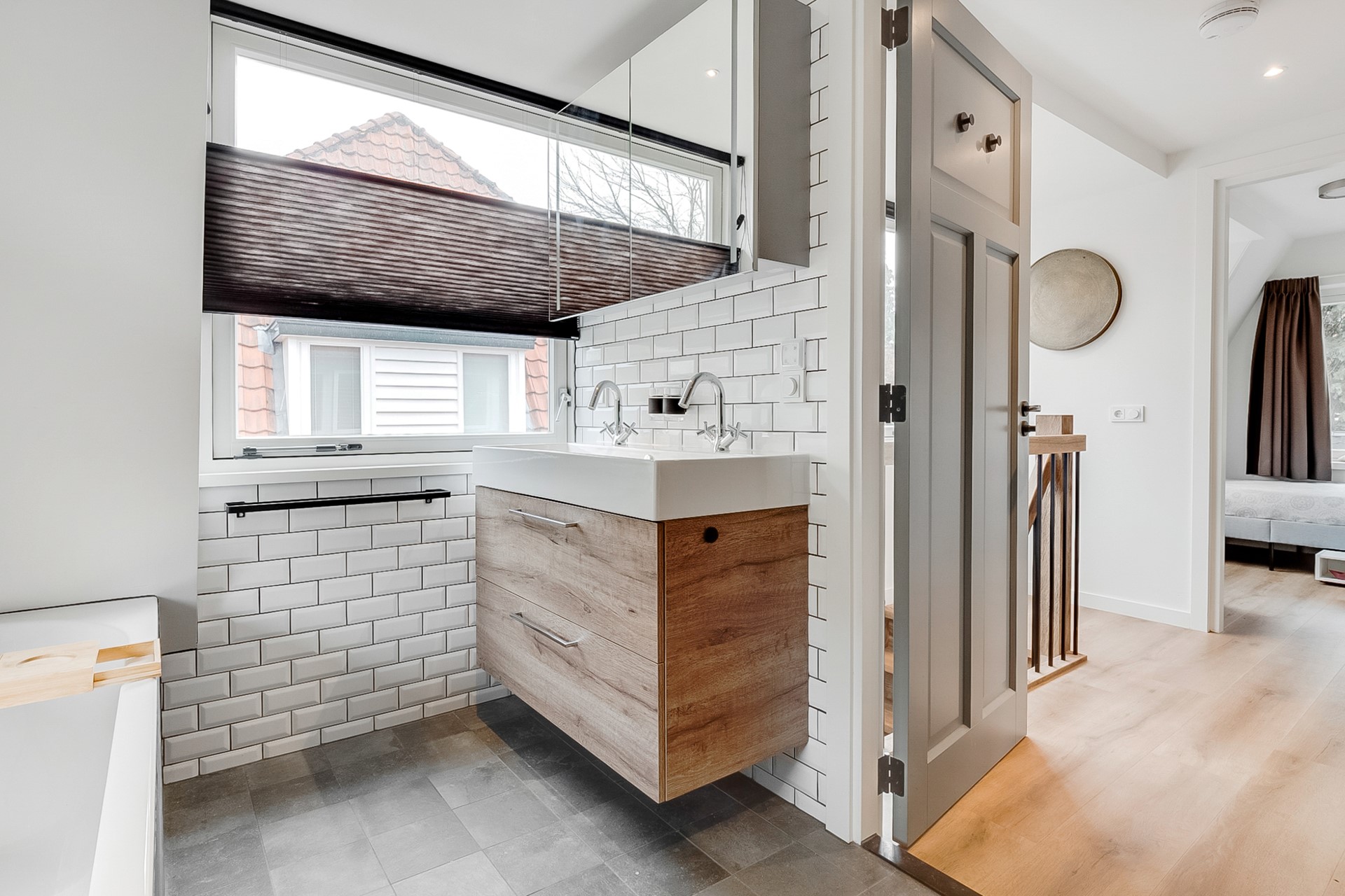 Overloop met dakkapel. Drie slaapkamers, waaronder de hoofdslaapkamer aan de achterzijde met Frans balkon en inbouwkast. Daarnaast een tweede slaapkamer aan de achterzijde en een derde kamer aan de voorzijde. De badkamer is modern uitgevoerd met ligbad, douche, toilet, wastafelmeubel en vloerverwarming.
