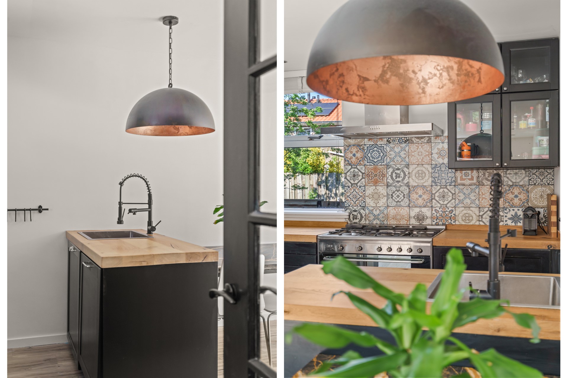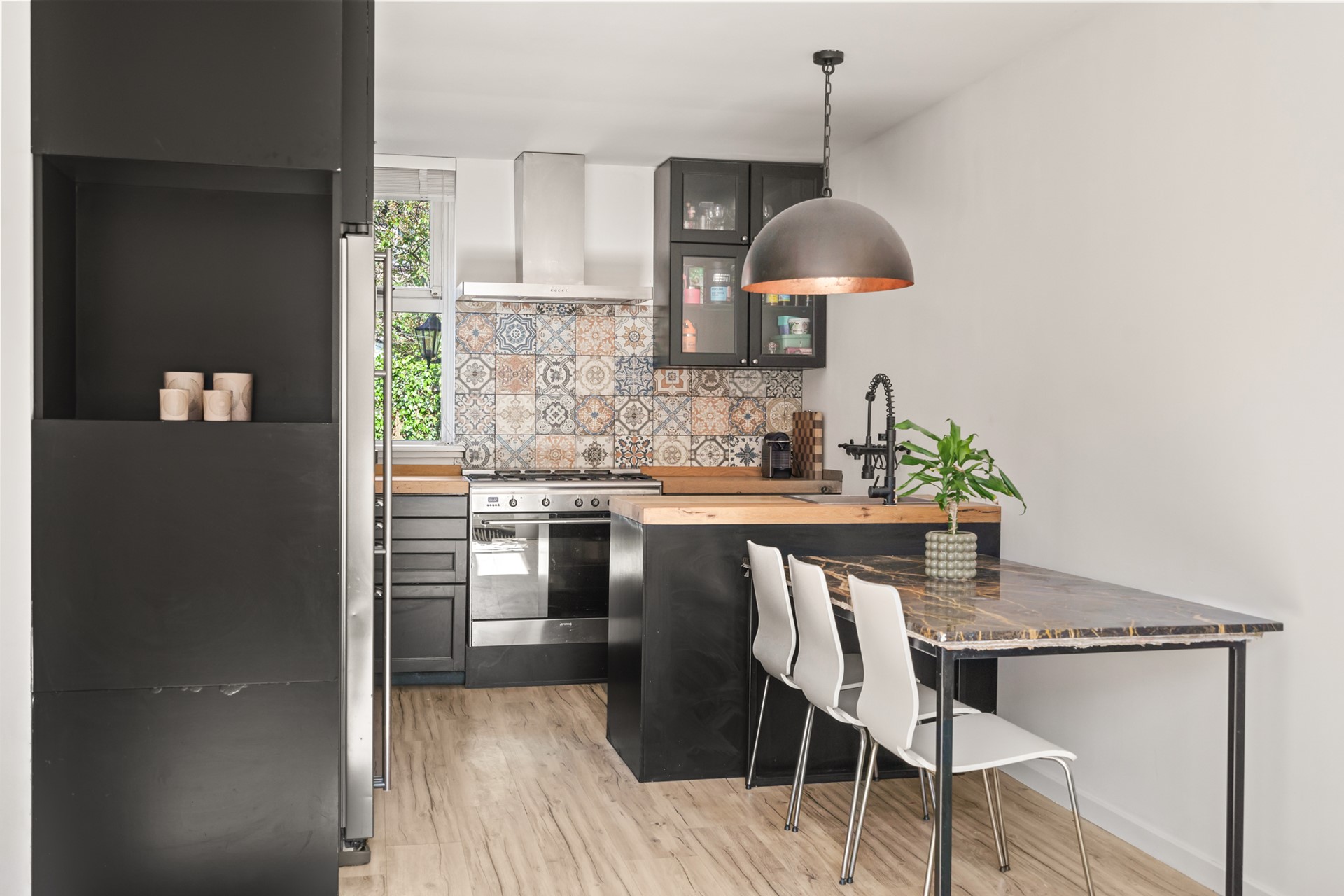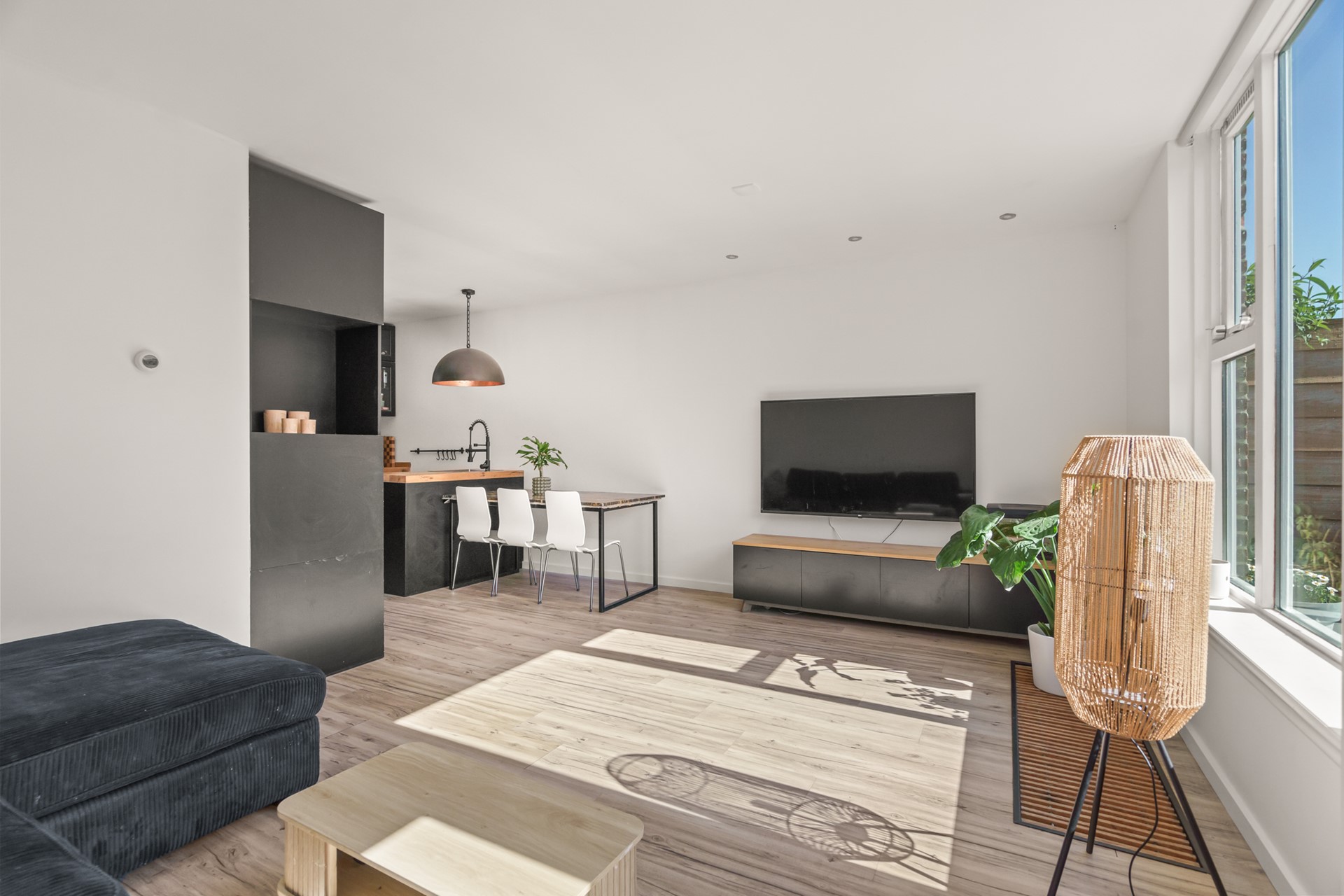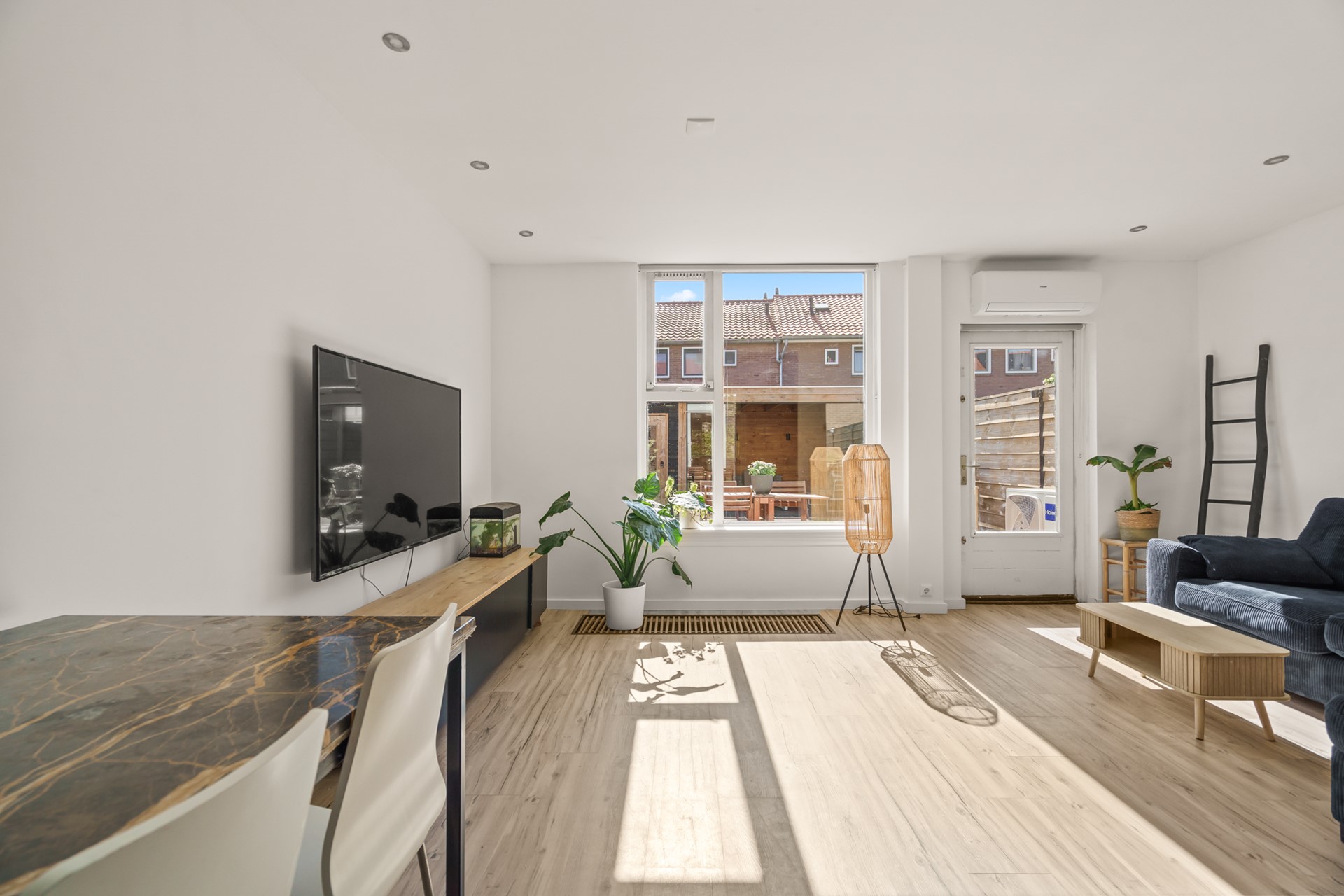 De woonkamer aan de achterzijde is heerlijk licht en vormt het hart van de woning. Via de tuindeur loop je zo de zonnige achtertuin in — perfect voor lange zomeravonden. De gehele begane grond is afgewerkt met een fraaie pvc-vloer en de woonkamer is voorzien van airconditioning.