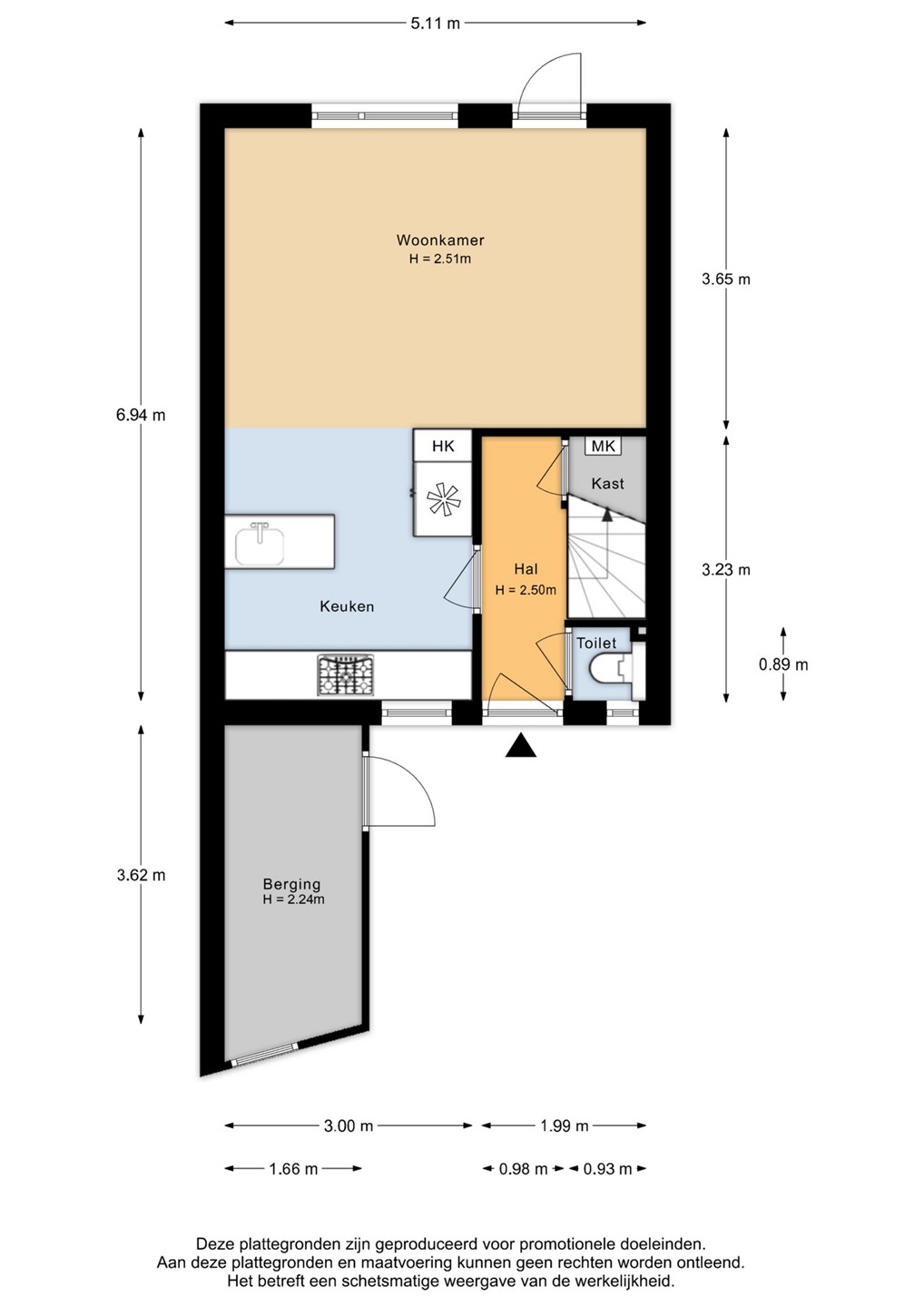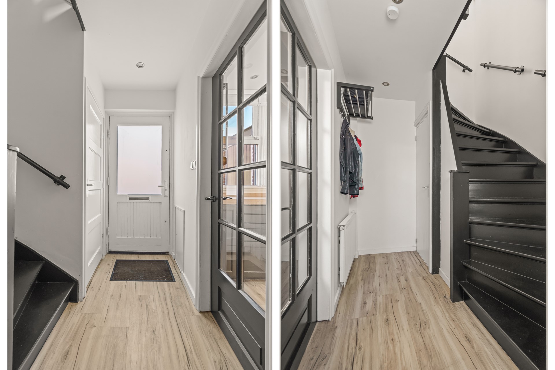 Je komt binnen in de hal met toiletruimte, trapopgang en praktische trapkast.