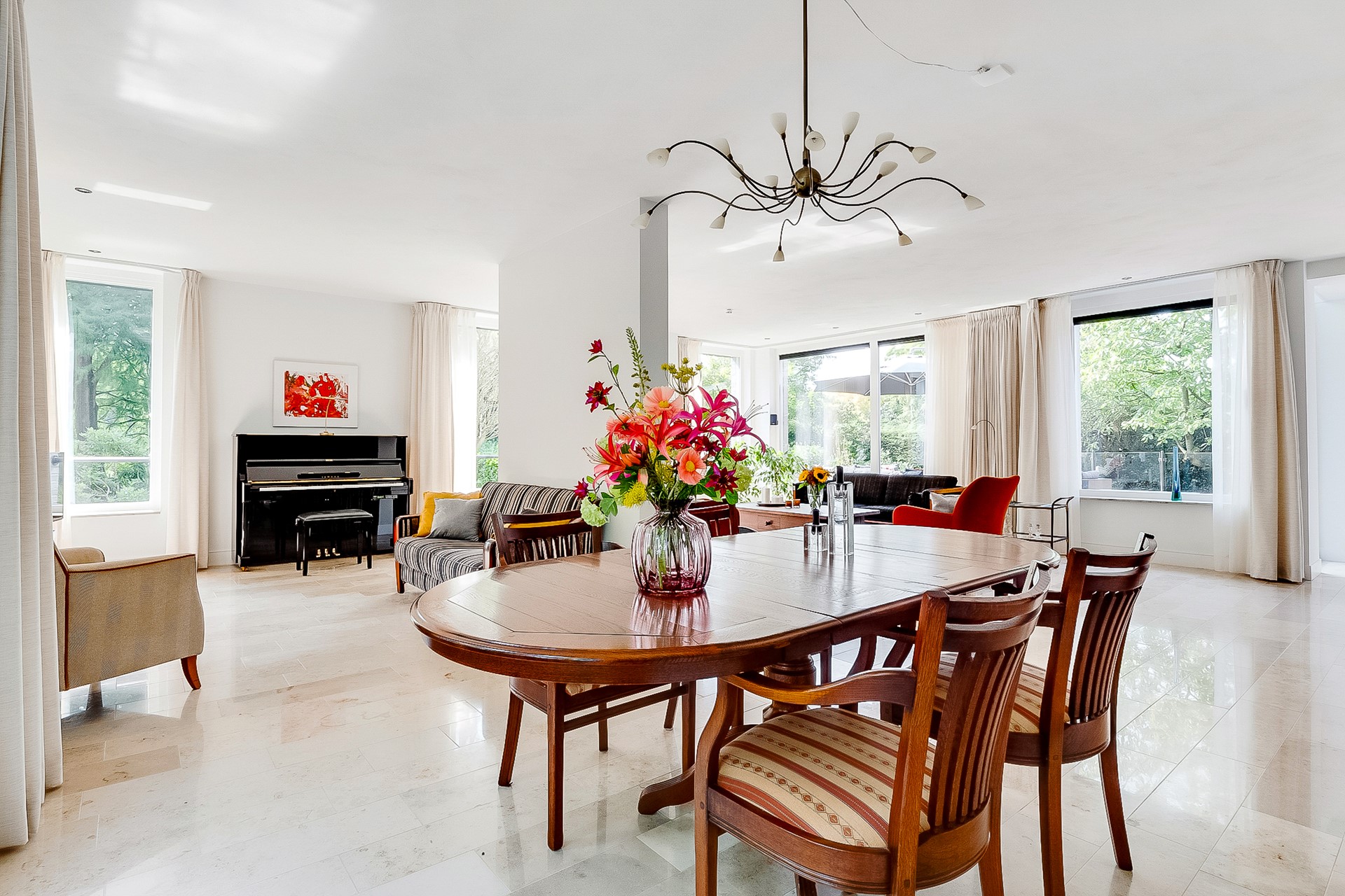 Bij binnenkomst valt meteen de royale opzet en het lichte karakter van de villa op. De ruime hal leidt naar de royale woonkamer, die door zijn grote raampartijen baadt in natuurlijk licht. De woonkamer staat in verbinding met de luxe keuken, die is voorzien van alle gemakken. De keuken is een ontwerp van het gerenommeerde merk Siematic en is uitgerust met een robuust granieten werkblad. Hier kun je naar hartenlust koken met behulp van alle aanwezige inbouwapparatuur, waaronder een inductiekookplaat, afzuiger, vaatwasser, combi-stoomoven, oven, een koel/vriescombinatie en een Quooker. Deze keuken biedt alles voor wie graag kookt en houdt van een stijlvolle afwerking en optimaal comfort.