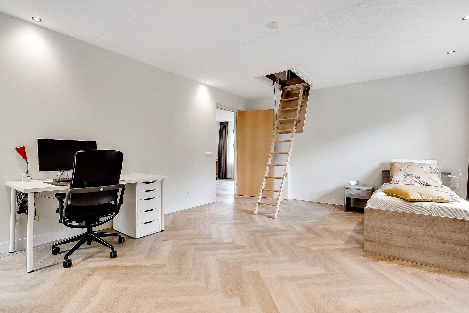 Daarnaast beschikt de villa over een ruime vliering van 12 m² (vloeroppervlak van circa 36 m²) gelegen onder het dak en toegankelijk via een vlizotrap in de slaapkamer.
