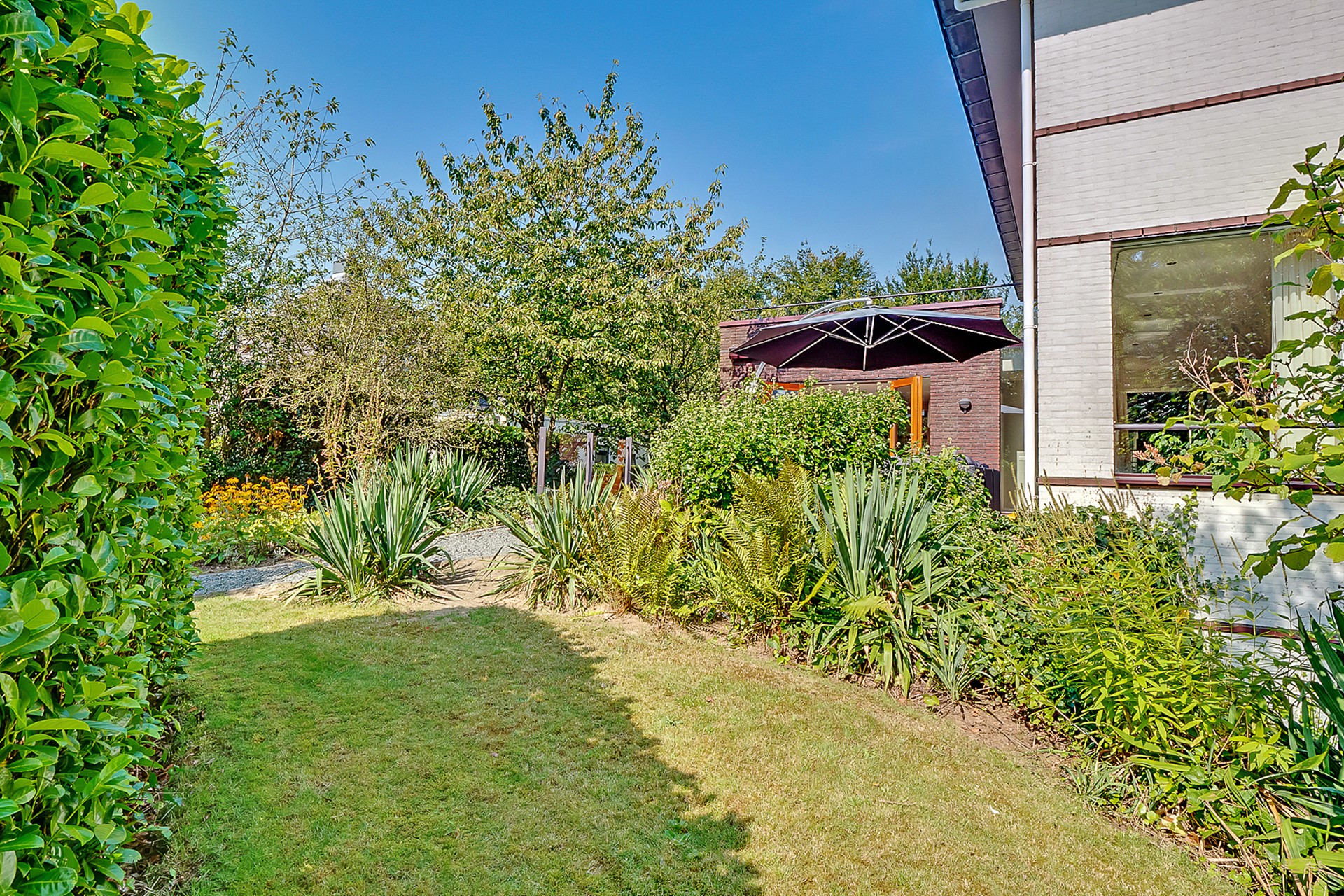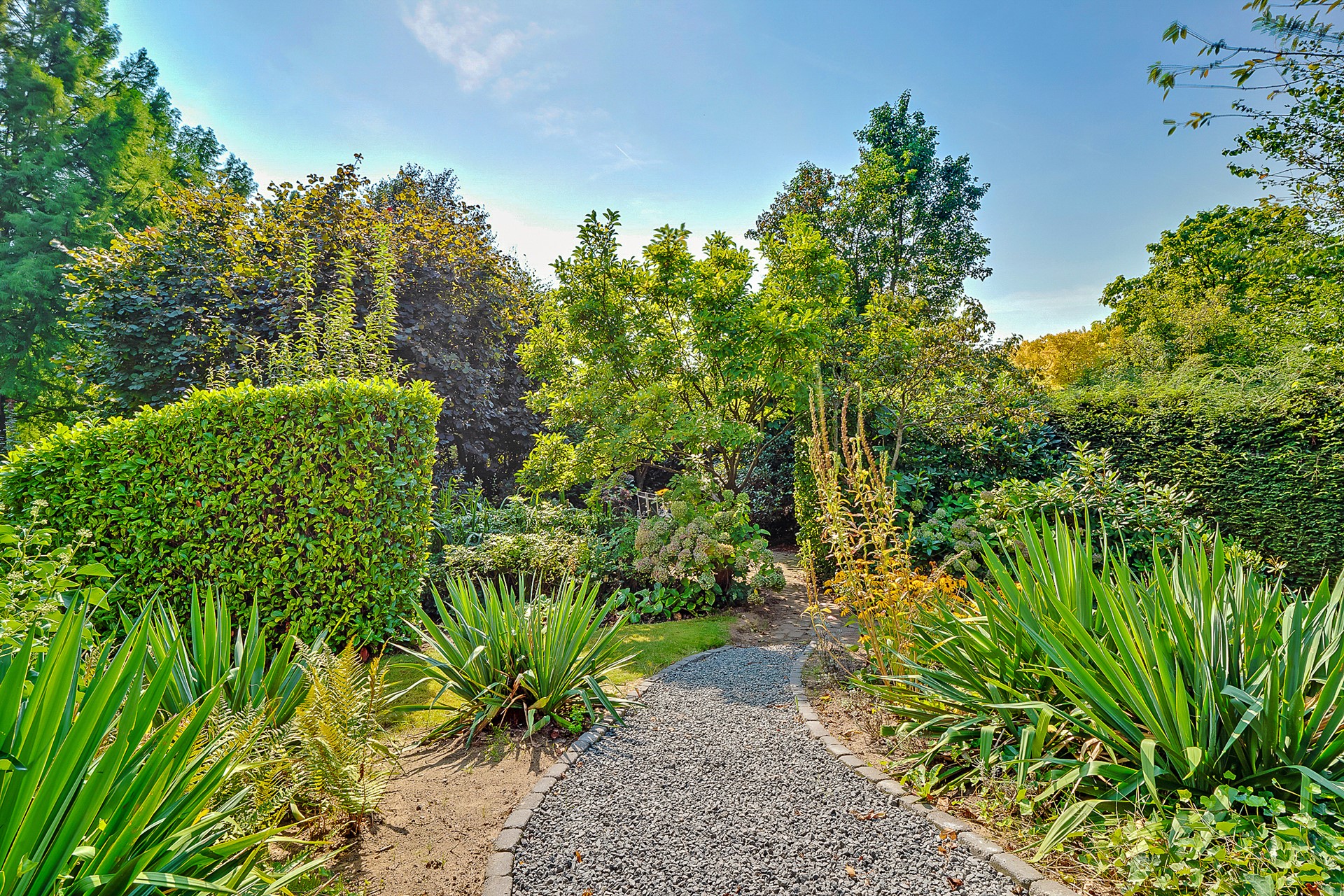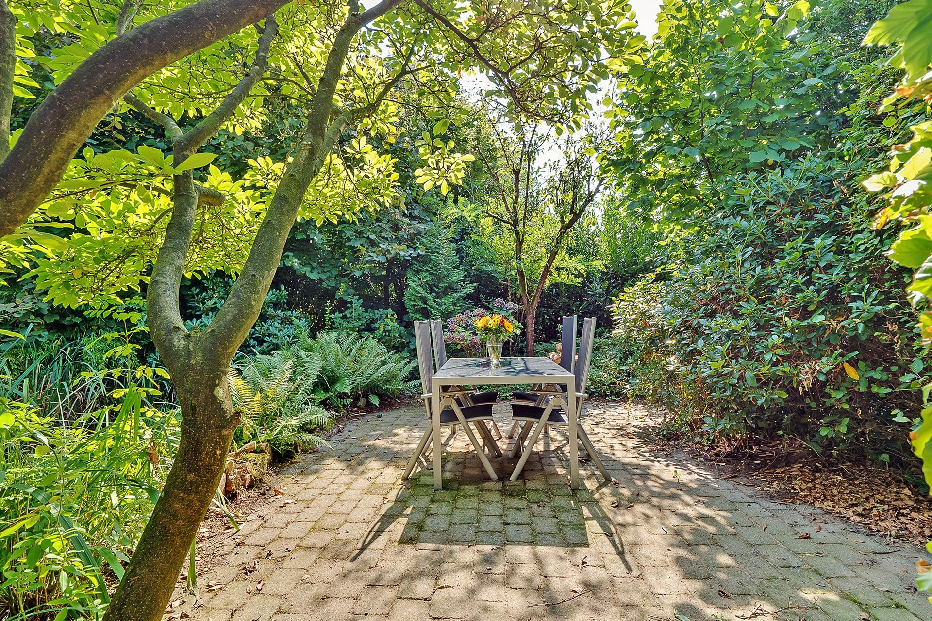 De tuin, gelegen op het zuiden, biedt volop ruimte om te genieten van zonnige dagen. Met meerdere terrassen is er altijd een perfecte plek om te ontspannen of gezellig buiten te dineren met familie en vrienden. Het groene karakter van de tuin biedt privacy en rust, zodat je in alle stilte van de buitenlucht kunt genieten.