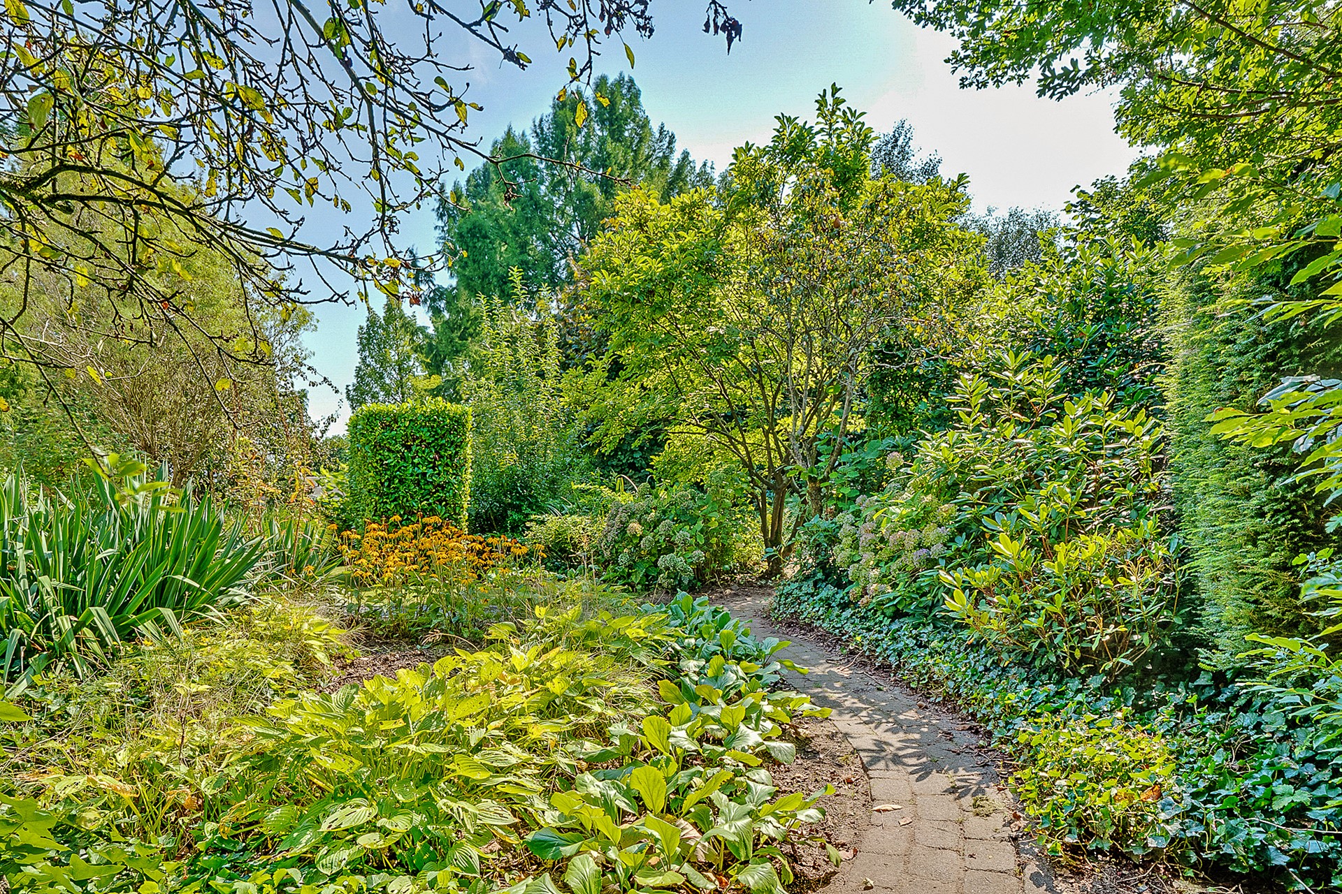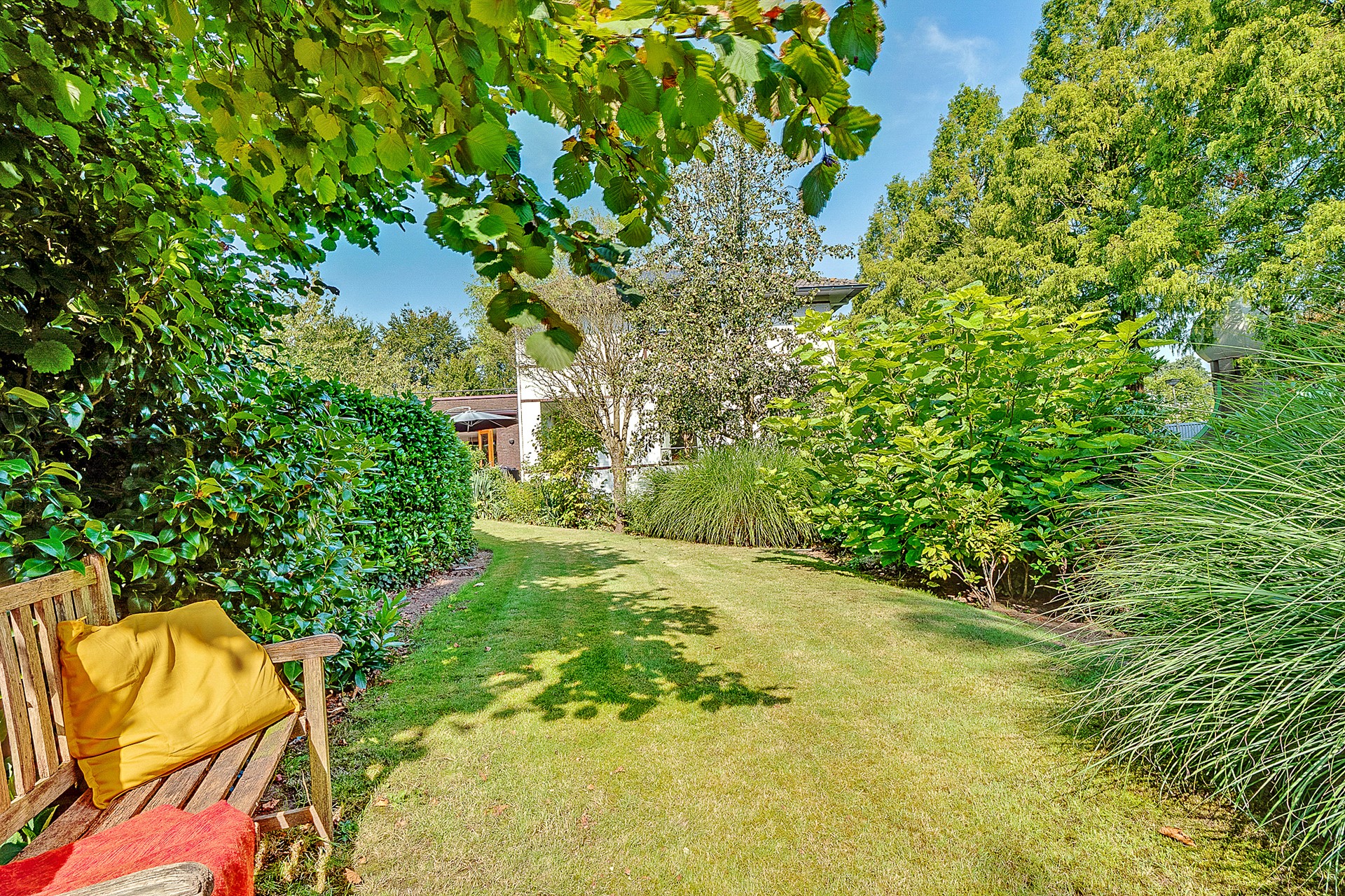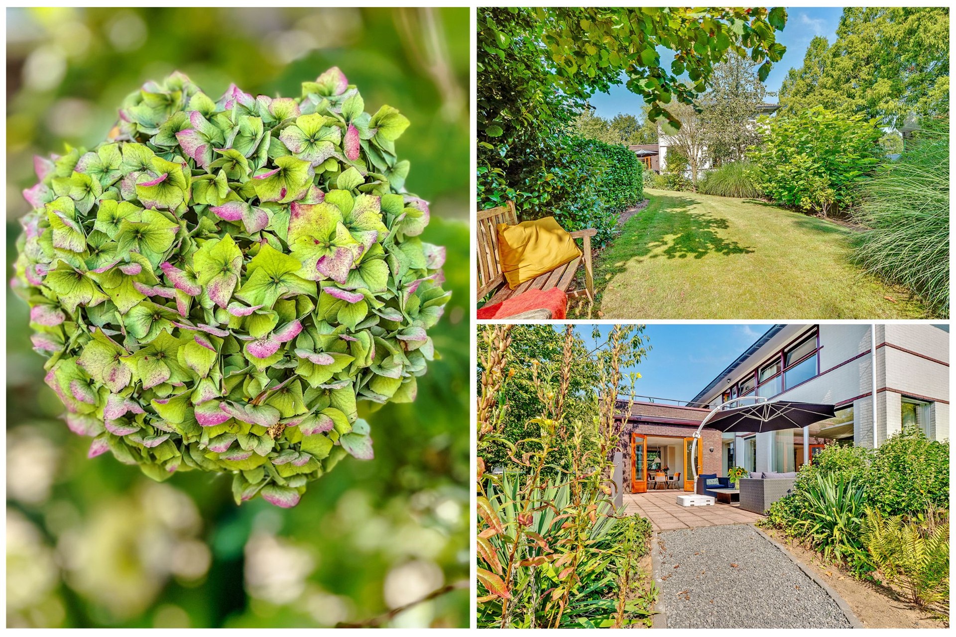 De tuin, gelegen op het zuiden, biedt volop ruimte om te genieten van zonnige dagen. Met meerdere terrassen is er altijd een perfecte plek om te ontspannen of gezellig buiten te dineren met familie en vrienden. Het groene karakter van de tuin biedt privacy en rust, zodat je in alle stilte van de buitenlucht kunt genieten.