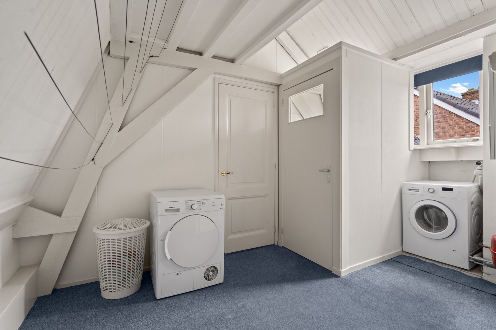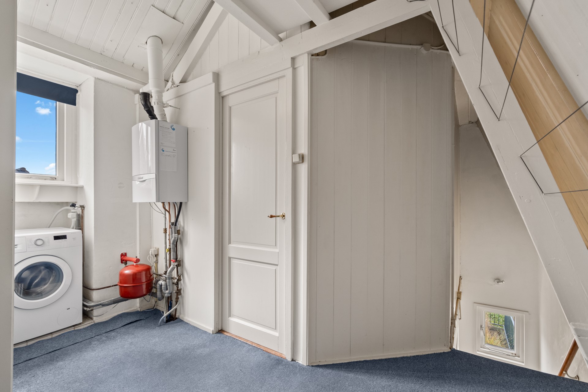 Overloop met cv-opstelling en wasmachineaansluiting.