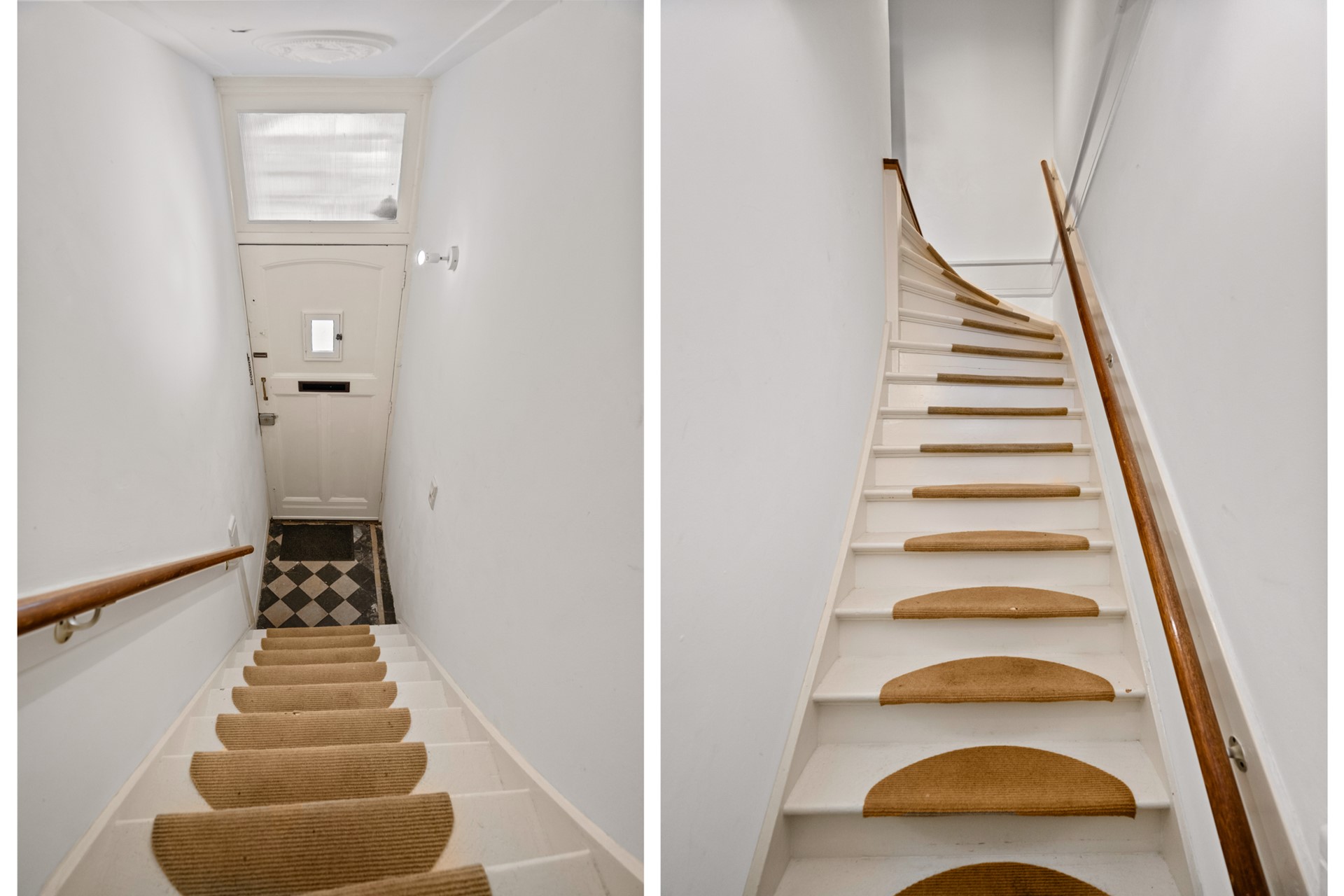 Eigen entree aan de straatzijde met hal en trapopgang naar de woning.