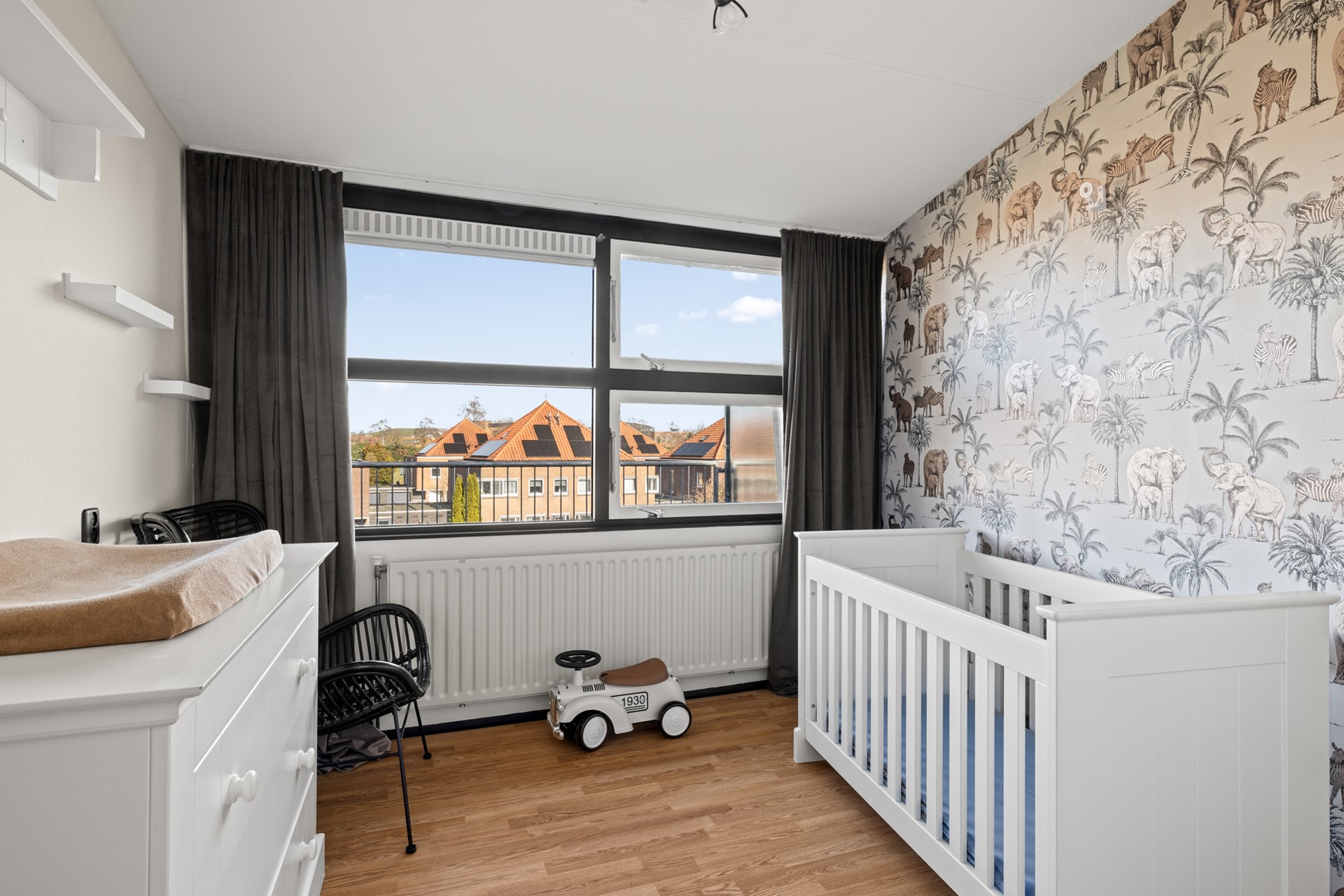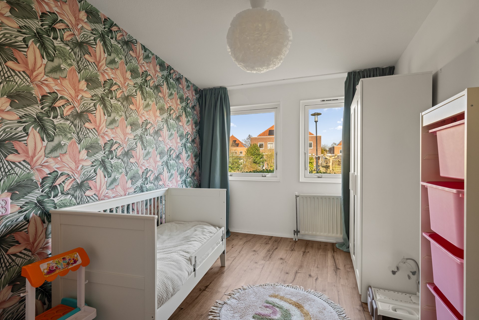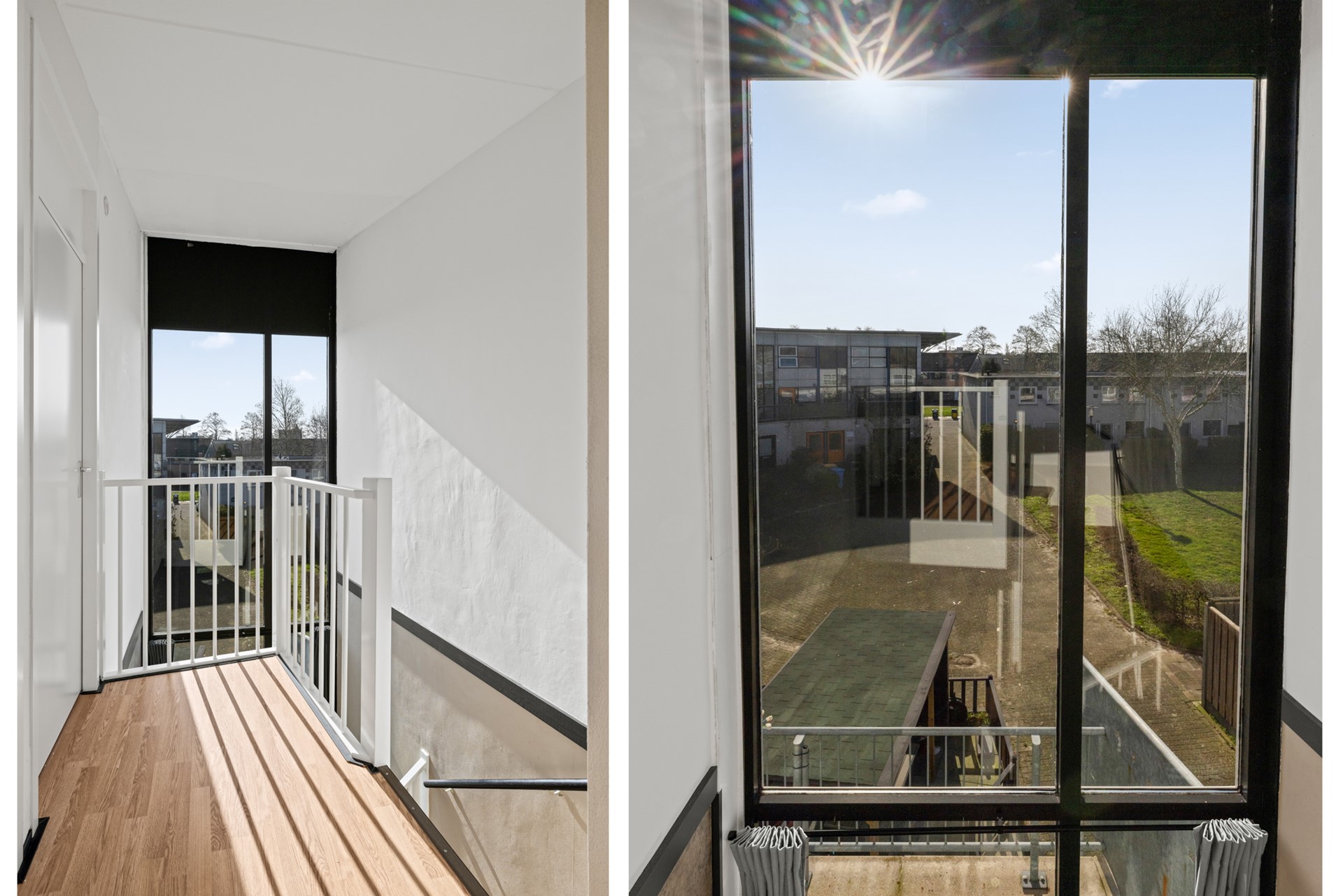De vide met hoge raampartij zorgt voor een prachtige lichtinval en biedt ruimte voor een leeshoek, werkplek of speelhoek.