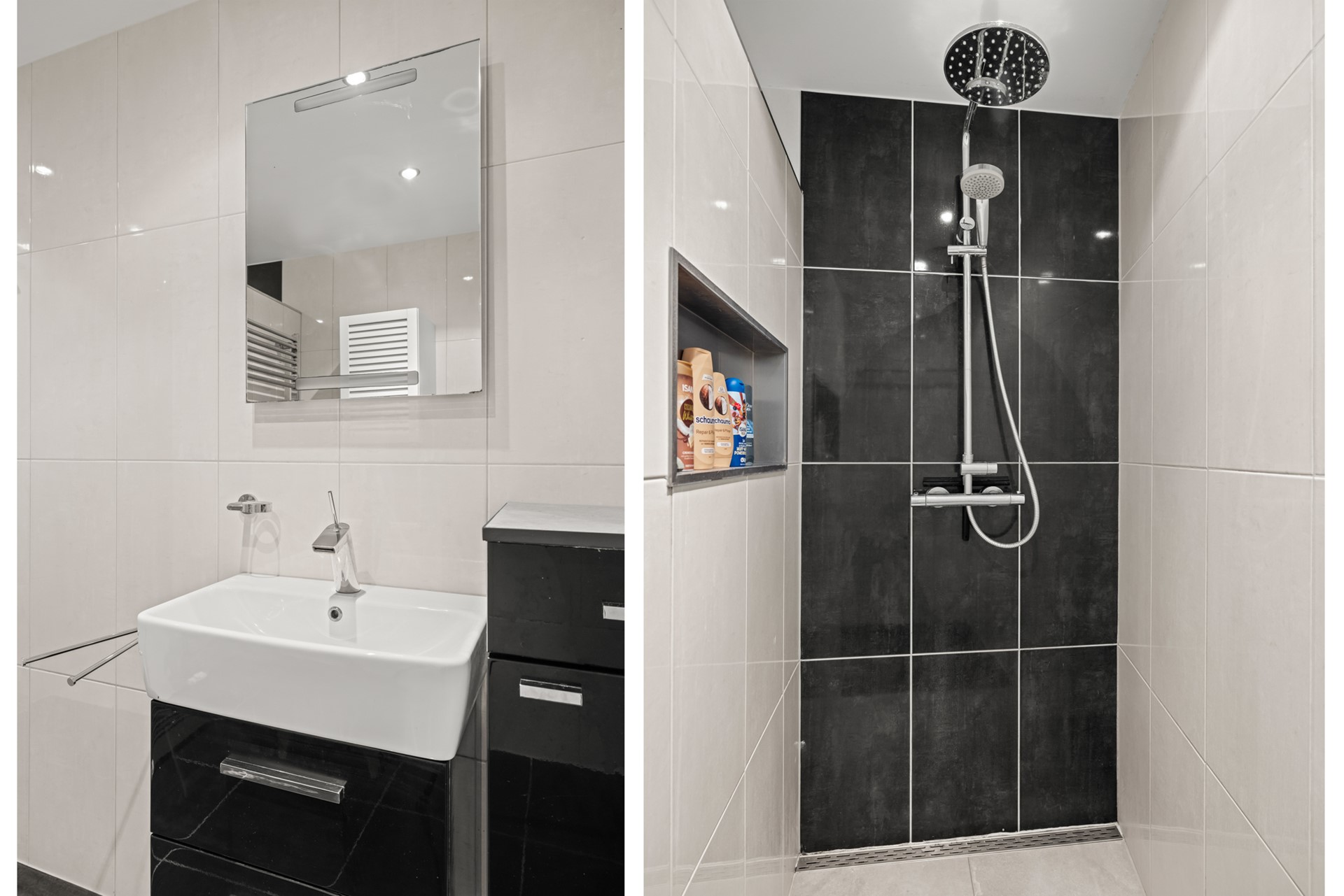 Op de tweede verdieping bevinden zich nog twee ruime slaapkamers en een tweede badkamer met douche en wastafel. Daarnaast is er bergruimte met CV-opstelling en toegang tot het ruime dakterras – een heerlijke, privé buitenplek.