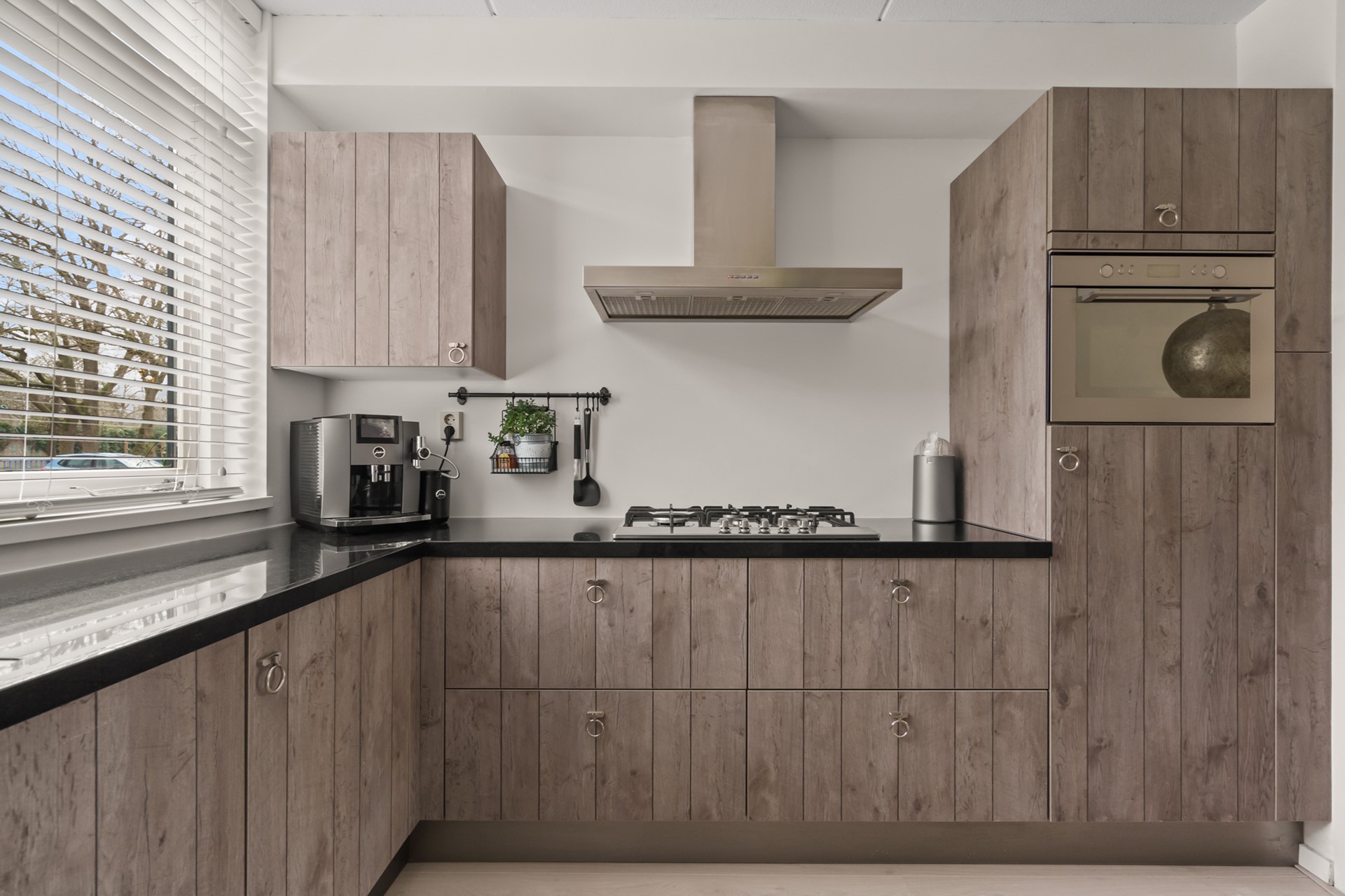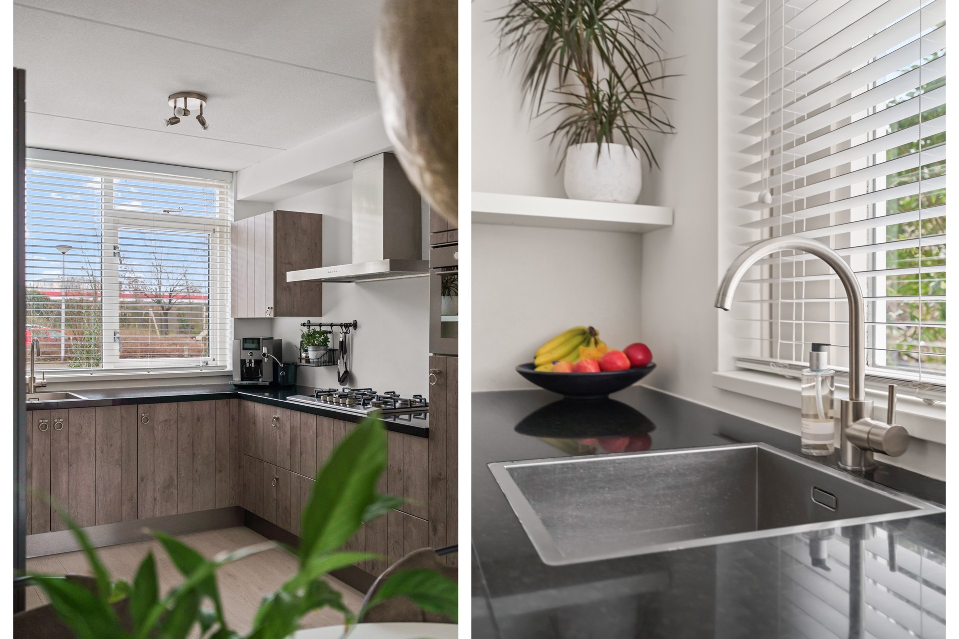 Je komt binnen in de hal met trapopgang, meterkast en toiletruimte. Vanuit hier stap je de tuingerichte woonkamer binnen: een fijne, lichte leefruimte met grote ramen, een loopdeur naar de tuin en een praktische trapkast. Aan de voorzijde bevindt zich de halfopen keuken in L-opstelling, voorzien van inbouwapparatuur en met prettig vrij uitzicht.