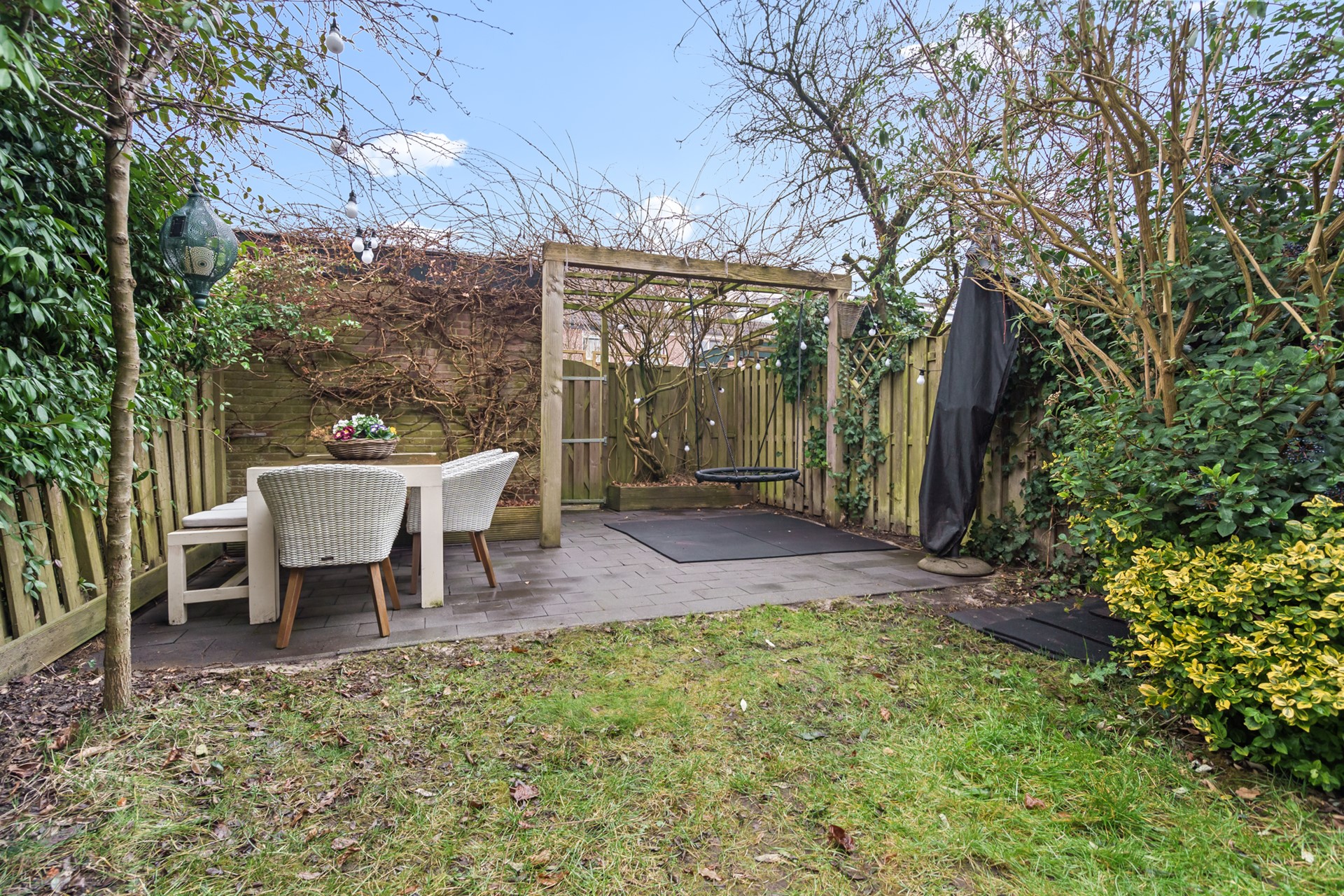 De zonnige achtertuin is gelegen op het zuiden en biedt volop ruimte om buiten te zitten. De tuin beschikt over een berging en een achterom, wat het geheel extra praktisch maakt.