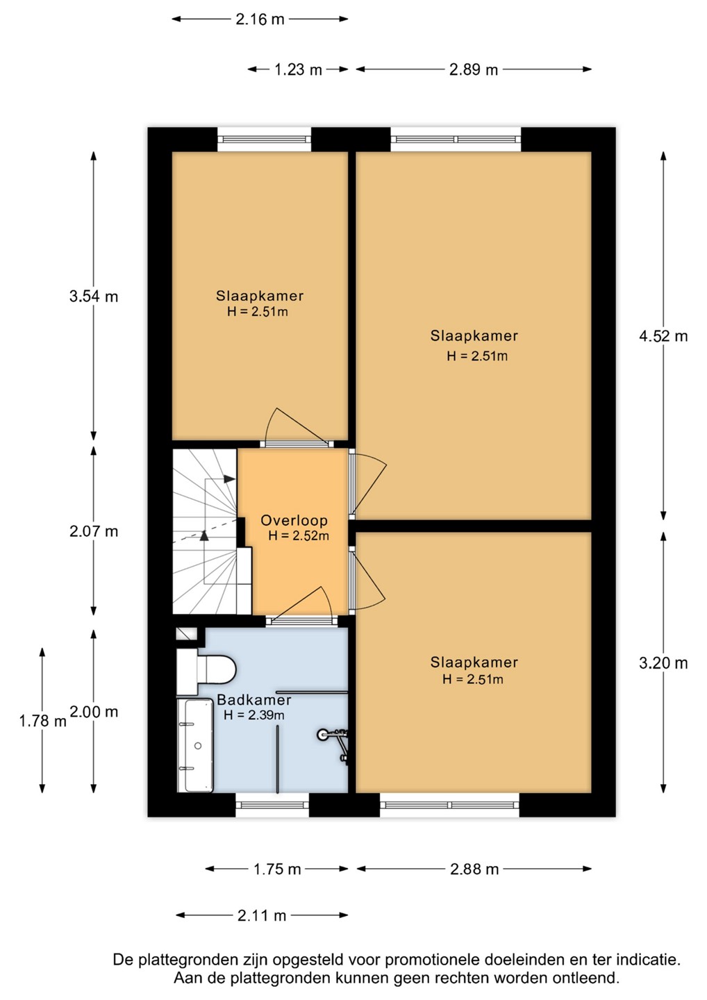 Op de eerste verdieping bevinden zich drie goed bemeten slaapkamers. De badkamer is compleet uitgevoerd met een toilet, wastafelmeubel en douche.