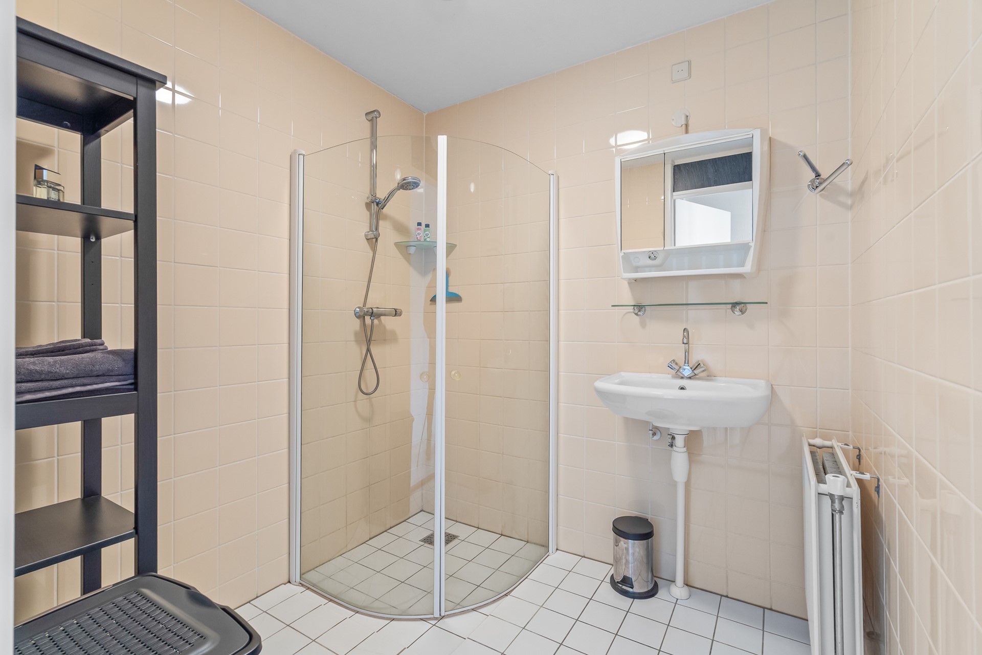 De slaapkamer is goed van formaat en biedt directe toegang tot de badkamer, die is voorzien van een douche en wastafel. Daarnaast is er een separate toiletruimte aanwezig. In de bergkast bevinden zich de cv-opstelling, de wasmachineaansluiting en de mechanische ventilatie-unit.