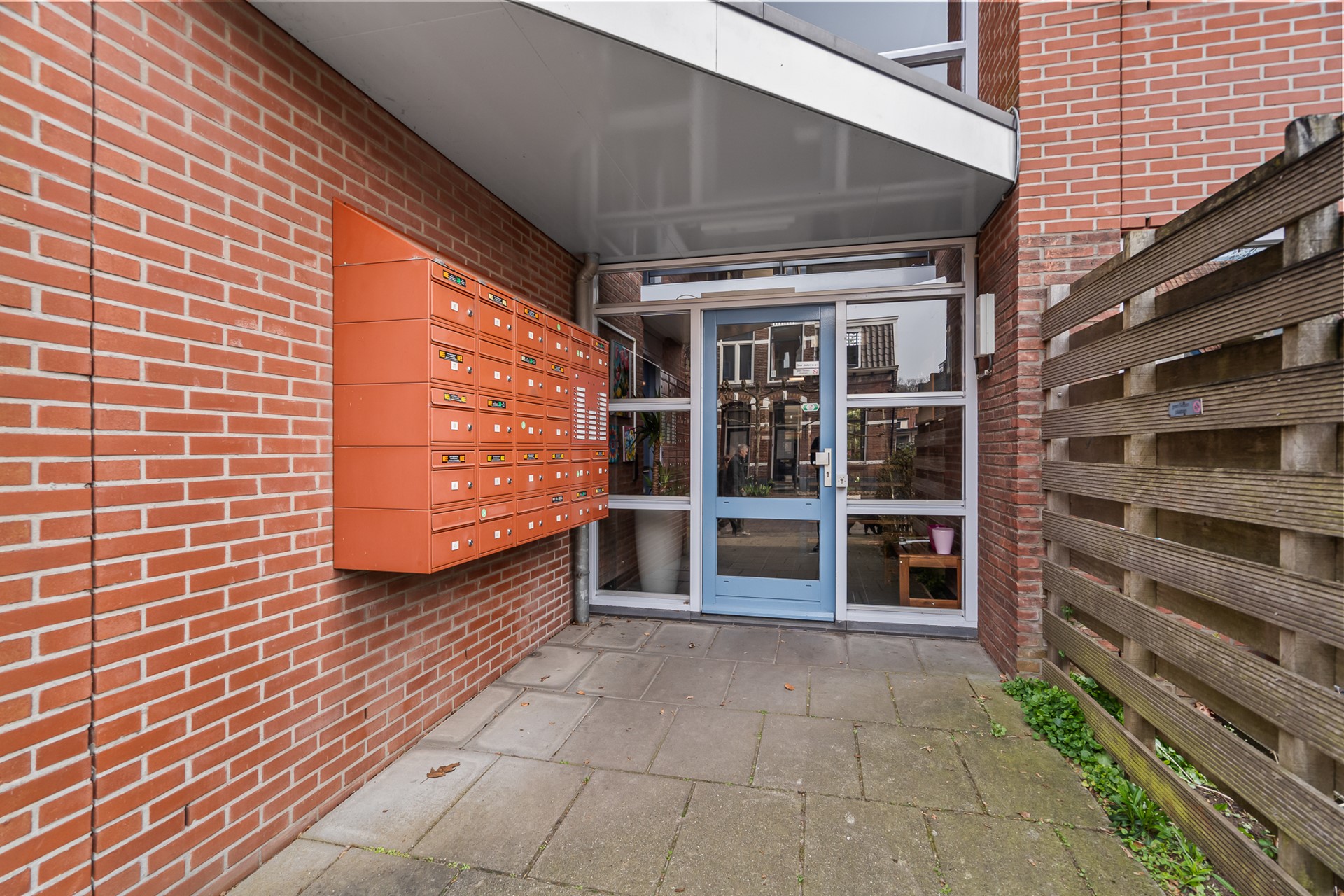 Via de afgesloten entree met brievenbussen en liftinstallatie bereik je het appartement op de eerste verdieping. Binnenkomst in de hal met garderoberuimte en meterkast. Vanuit hier zijn de verschillende vertrekken toegankelijk.