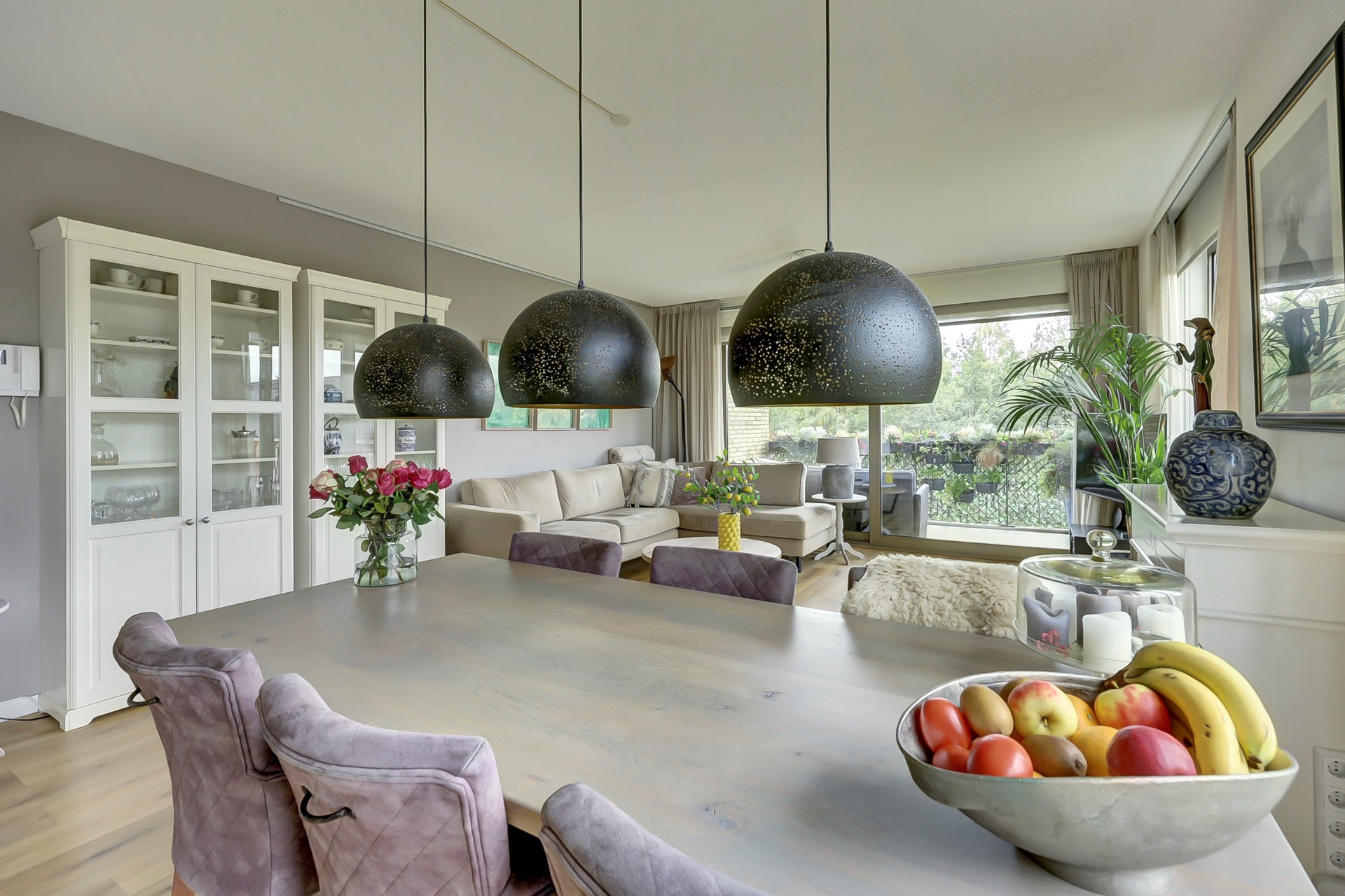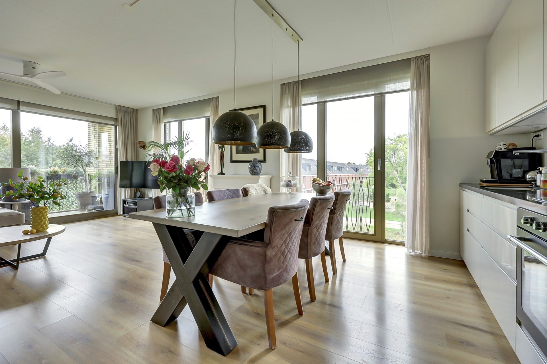 De woonkamer valt direct op door de enorme lichtinval. Dankzij de hoekligging komt er licht van twee kanten binnen en geniet je van een prachtig vrij uitzicht over het groen. Er is volop ruimte voor een royale zithoek én een eethoek. Via de grote schuifpui stap je zo het zonnige balkon op, gelegen op het zuiden.