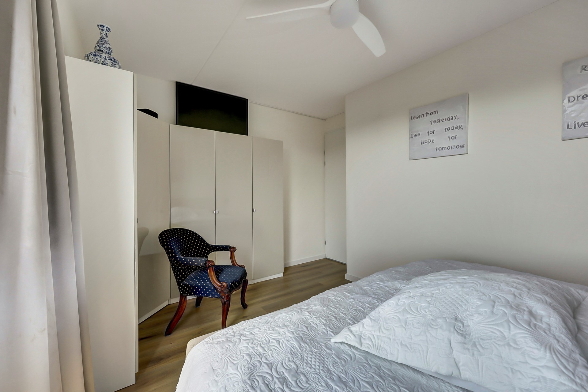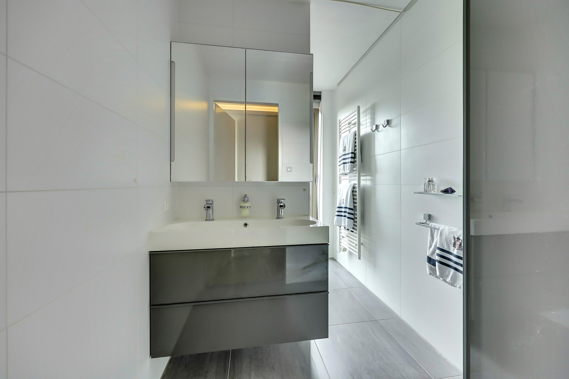 Het appartement beschikt over drie slaapkamers. De badkamer is stijlvol afgewerkt en voorzien van een ruime inloopdouche, een opbergkast en een wastafelmeubel.