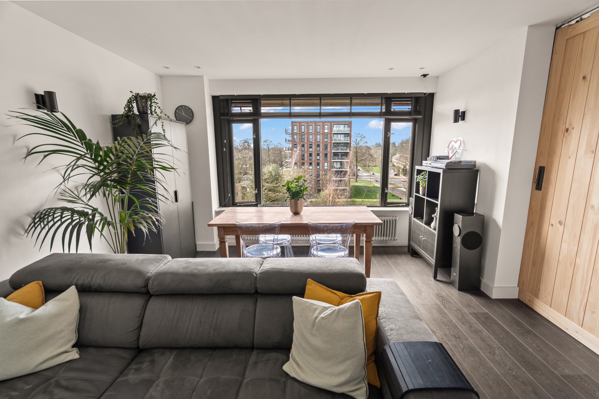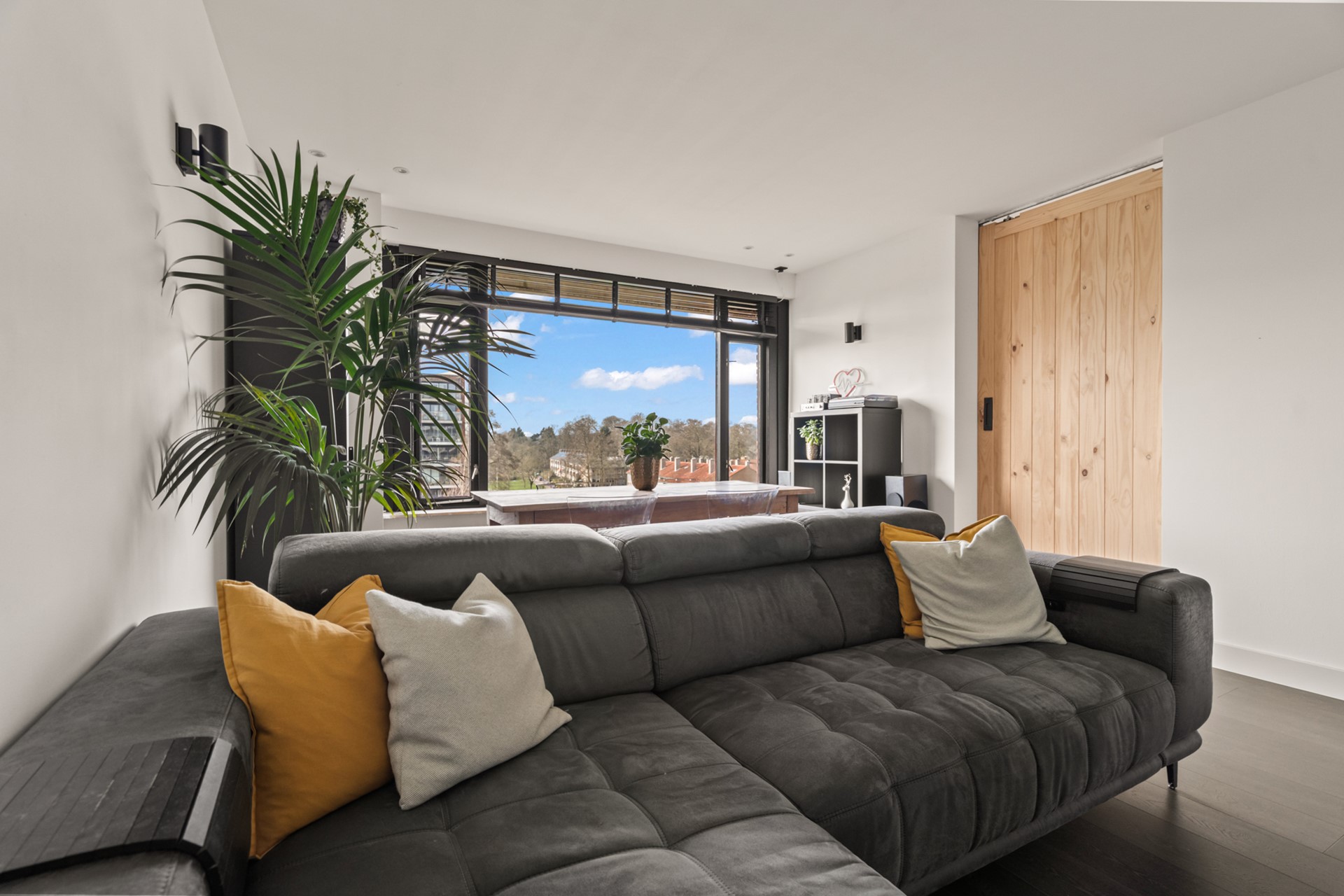 De ruime woonkamer is bijzonder licht dankzij het grote raam en biedt een schitterend vrij uitzicht.