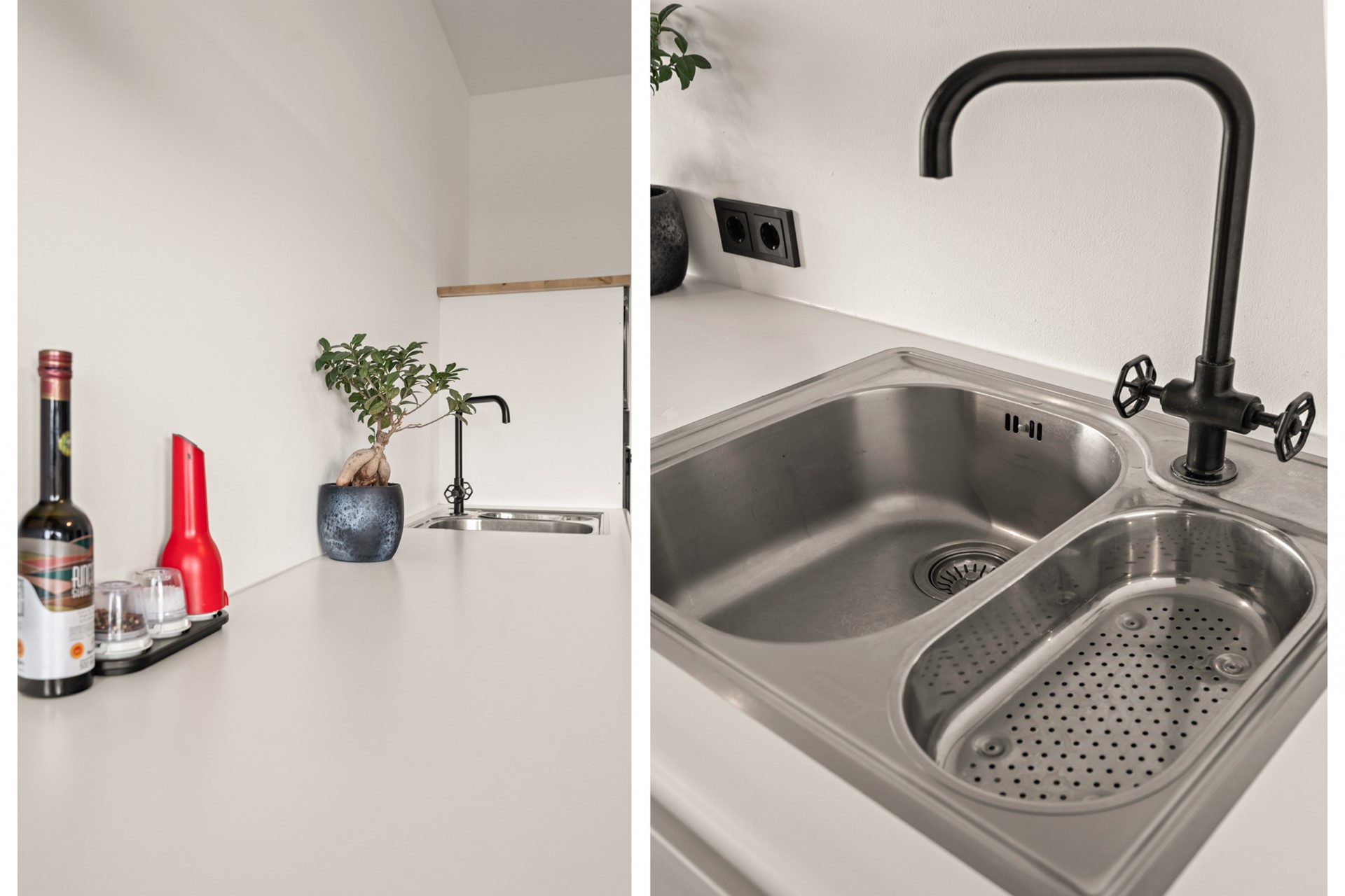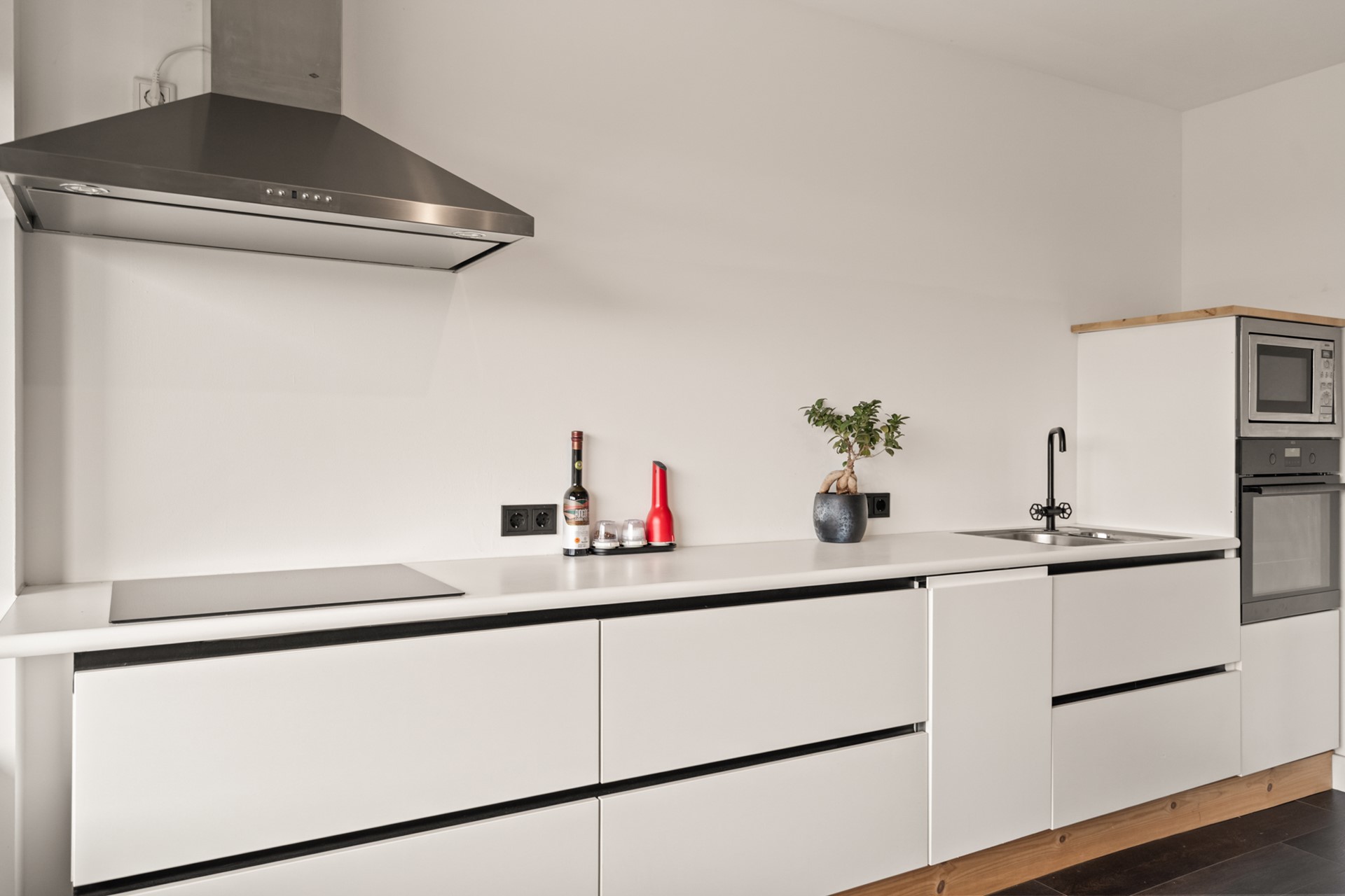 Tijdens de verbouwing zijn muren verplaatst, waardoor de woning een praktische en ruimtelijke indeling heeft gekregen. De keuken is verplaatst naar de balkonzijde, wat heeft geresulteerd in een prachtige, lichte leefkeuken: dé centrale plek van de woning. Dankzij deze indeling geniet je tijdens het koken van veel daglicht en een vrij uitzicht. De moderne keuken is voorzien van diverse inbouwapparatuur, waaronder een inductiekookplaat, heteluchtoven, magnetron en afzuigkap. Aansluitend bevindt zich het zonnige balkon, gelegen op het zuidwesten, waar je in de middag en avond optimaal van de zon kunt genieten.