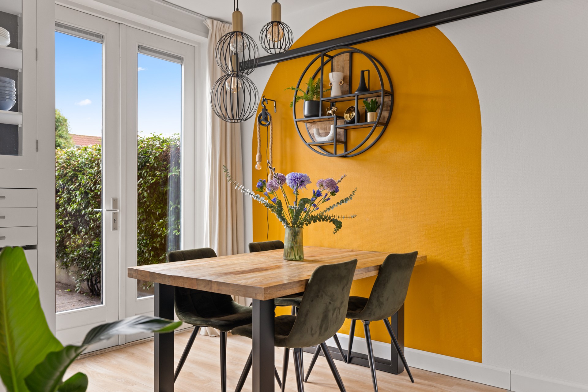 Bij binnenkomst voel je het meteen: sfeer. De gezellige woonkamer biedt ruimte voor zowel een comfortabele zithoek als een fijne eethoek. Dankzij de openslaande deuren naar de achtertuin geniet je hier van veel licht en een mooie verbinding met buiten. De aanwezige airco zorgt bovendien voor extra comfort in warme zomers.