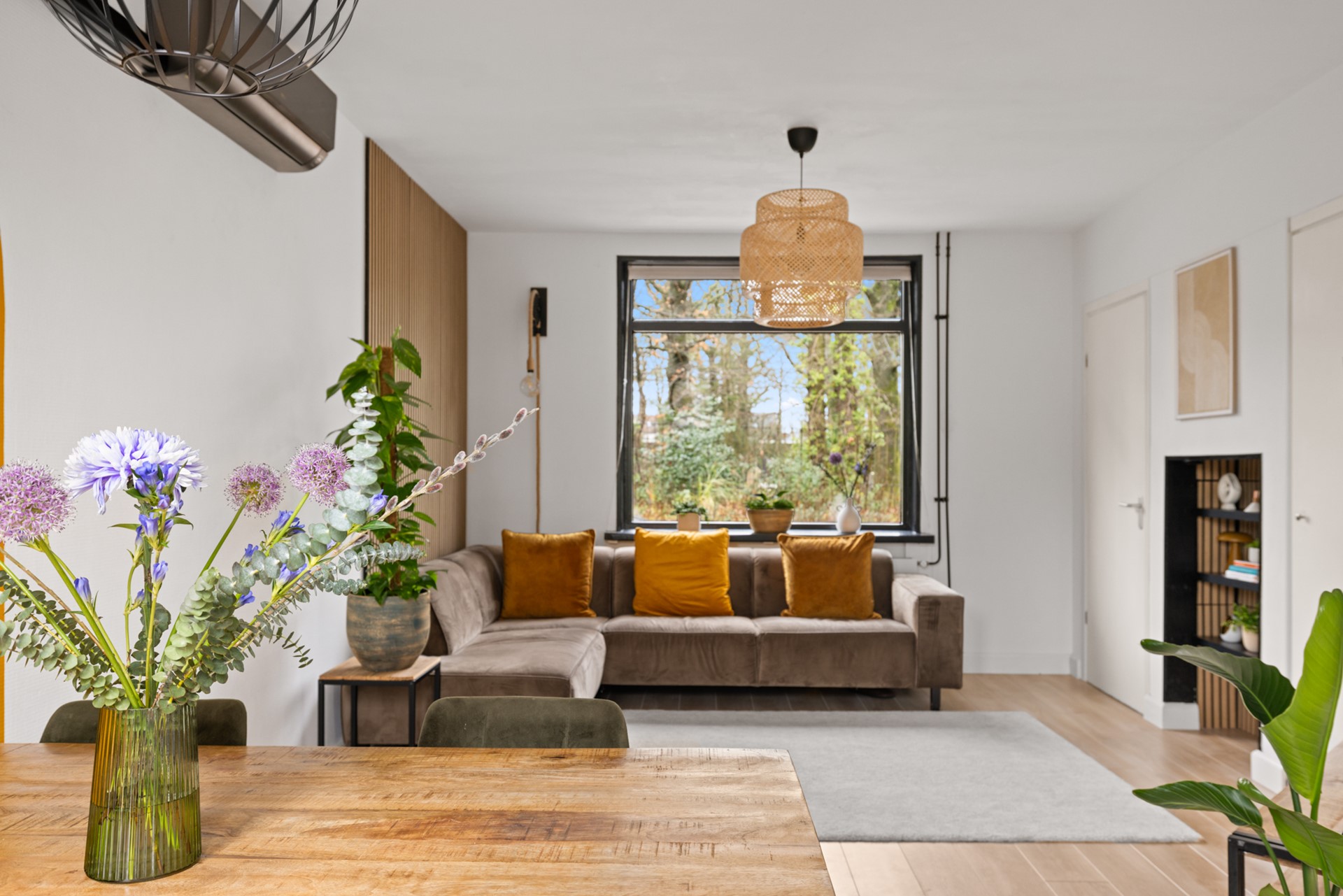 Bij binnenkomst voel je het meteen: sfeer. De gezellige woonkamer biedt ruimte voor zowel een comfortabele zithoek als een fijne eethoek. Dankzij de openslaande deuren naar de achtertuin geniet je hier van veel licht en een mooie verbinding met buiten. De aanwezige airco zorgt bovendien voor extra comfort in warme zomers.