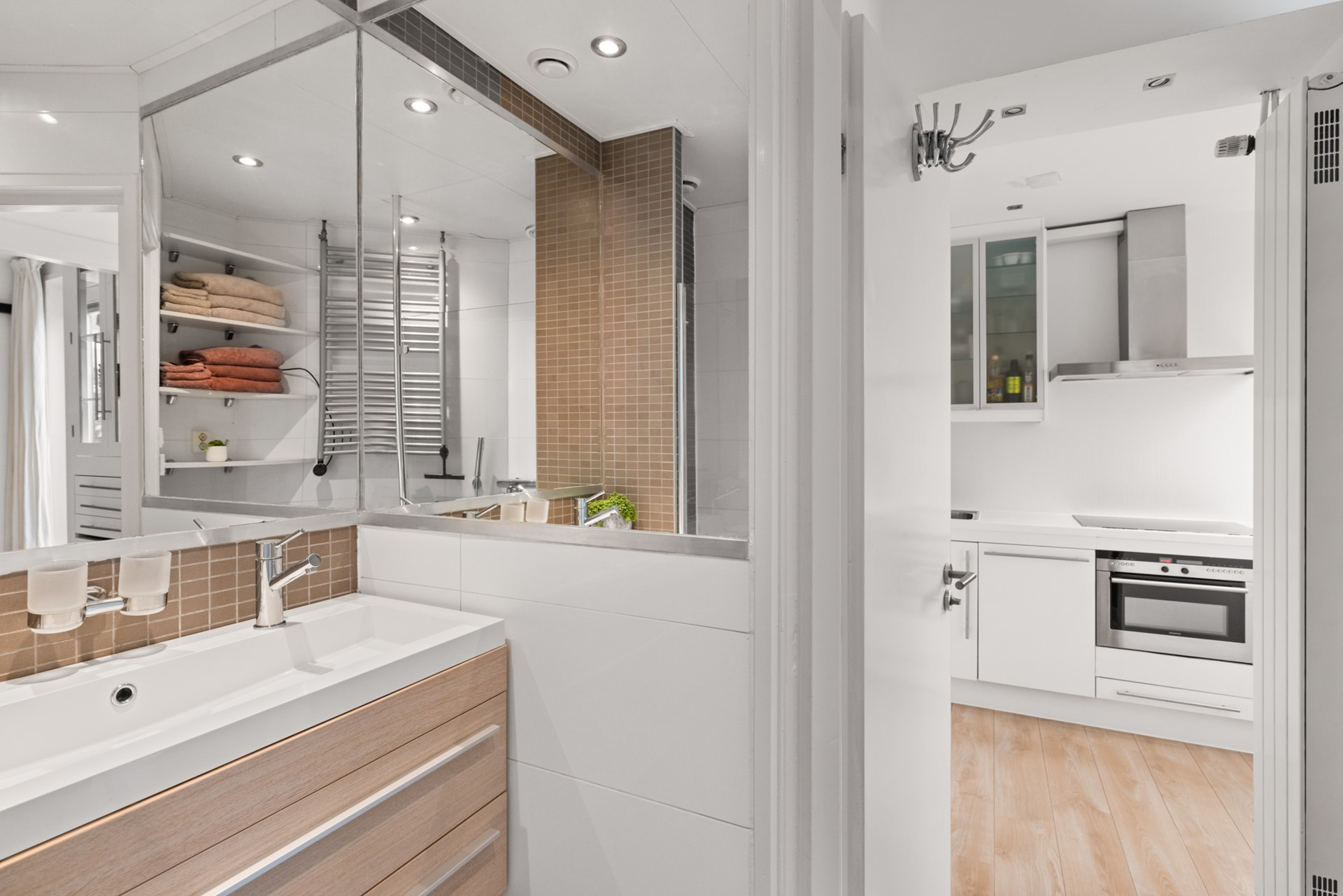 De badkamer (2015) bevindt zich op de begane grond en is van alle gemakken voorzien: elektrische vloerverwarming, een ruime inloop-regendouche, wastafelmeubel en designradiator. Het separate toilet bevindt zich direct naast de badkamer — prettig en praktisch.