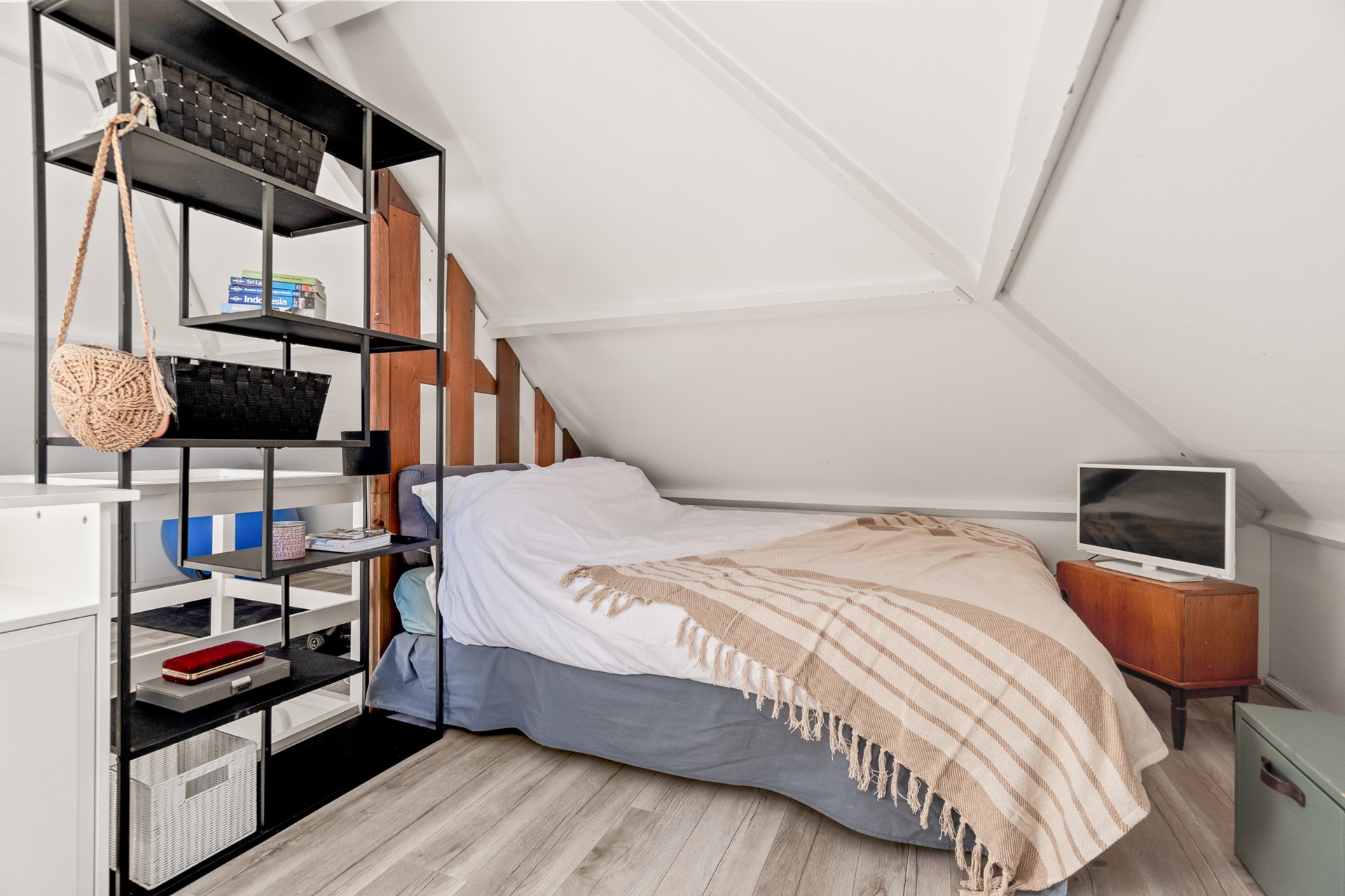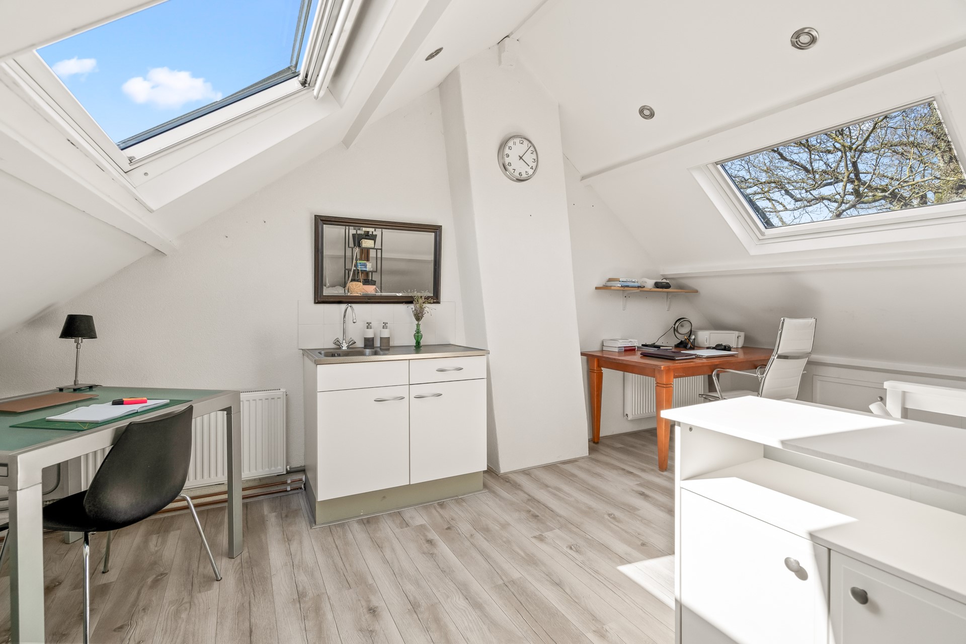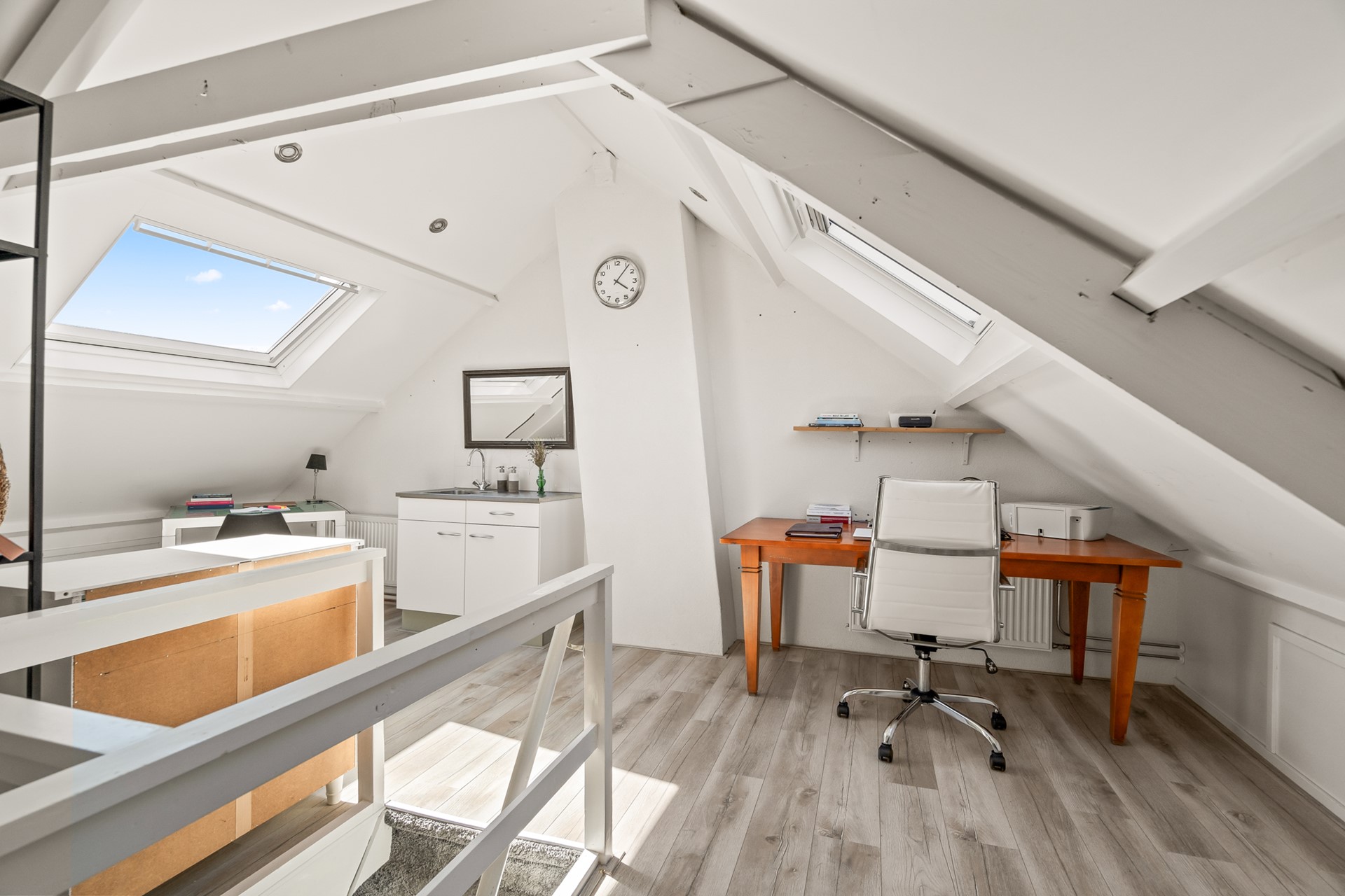 Open zolderruimte met twee dakramen en veel potentie. Deze verdieping leent zich uitstekend voor het realiseren van één of twee extra slaapkamers, een werkplek of een combinatie daarvan.