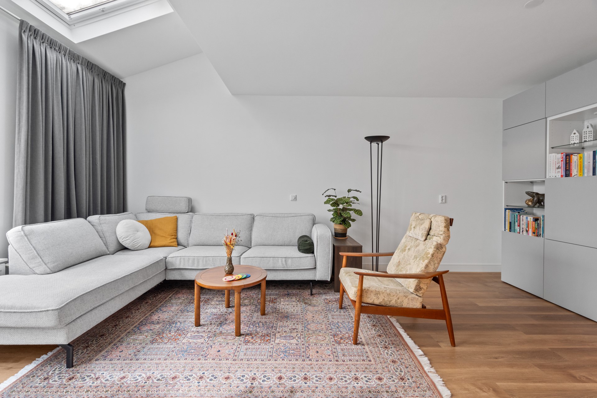 De uitgebouwde woonkamer aan de tuinzijde verrast met veel daglicht dankzij grote ramen, dakramen en een tuindeur. Het is een uitnodigende plek voor ontspanning, voor samenzijn en om het woonplezier écht te ervaren.