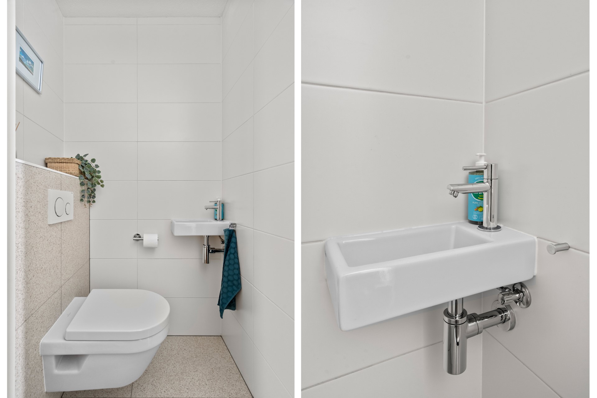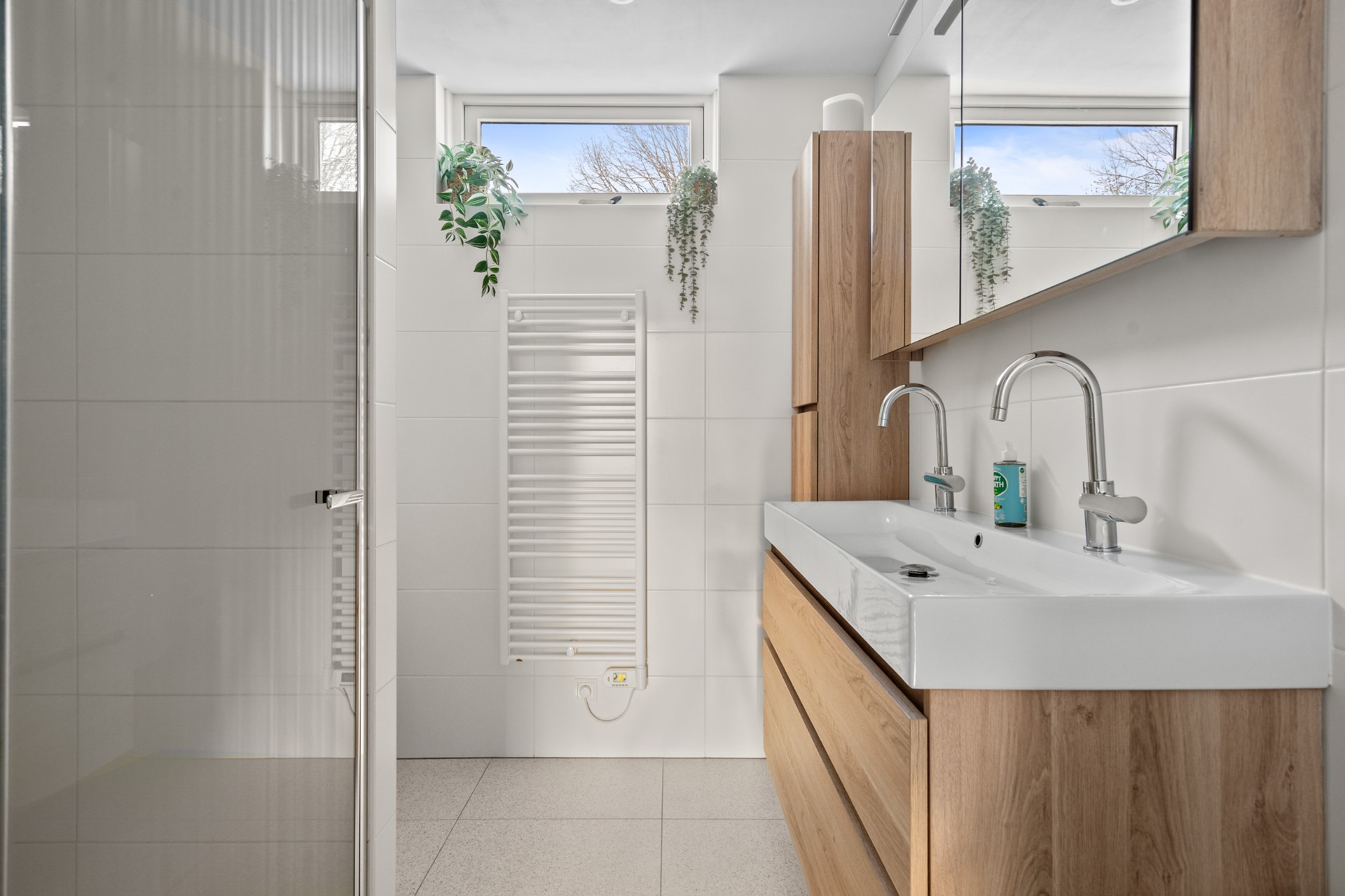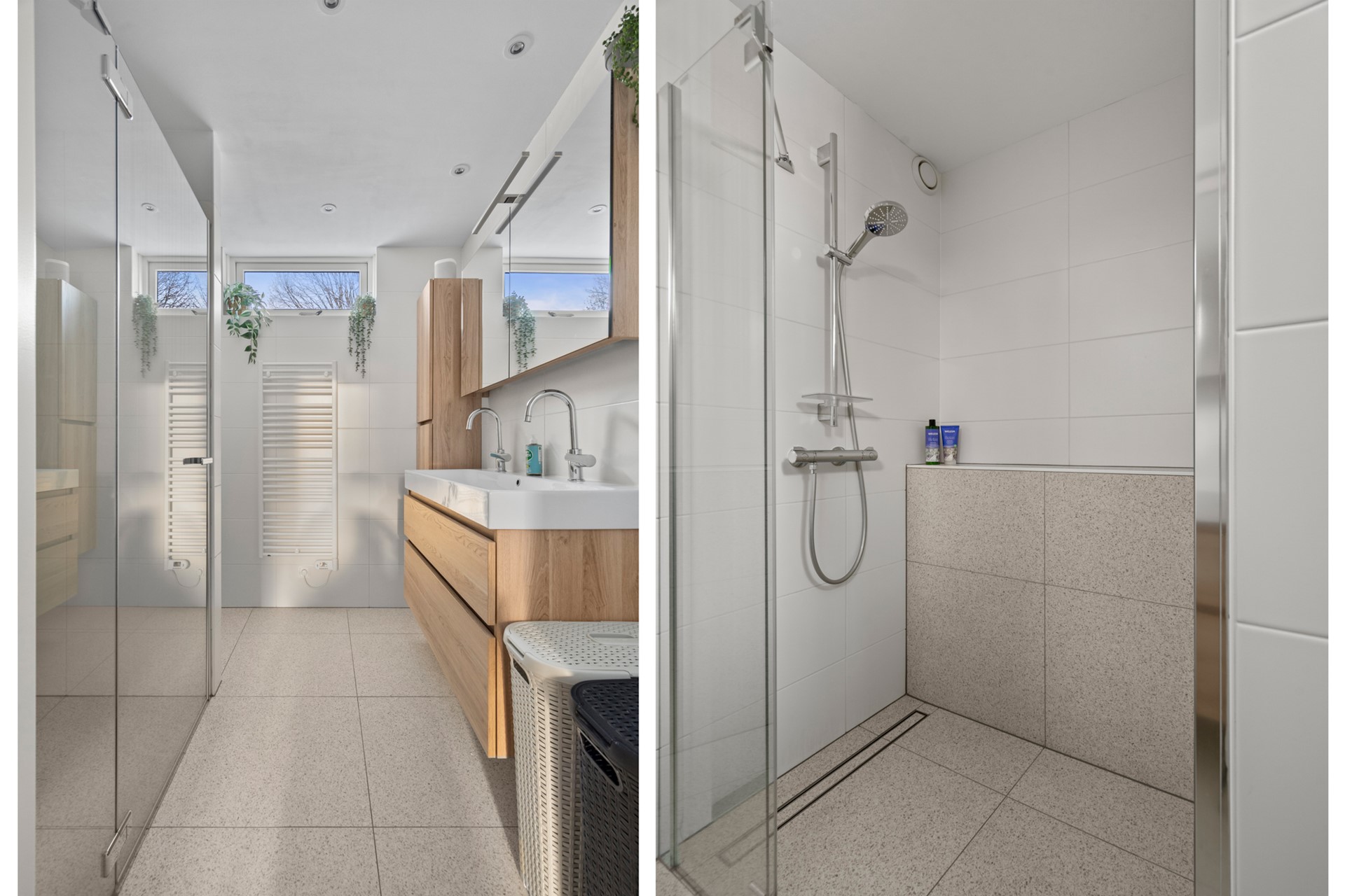 Hier bevinden zich drie volwaardige slaapkamers, waarvan twee met vaste kasten. De badkamer (2023) is een fraaie ruimte met een moderne uitstraling, een royale inloopdouche, een tweede toilet en een stijlvol wastafelmeubel. Comfort en frisheid in één.