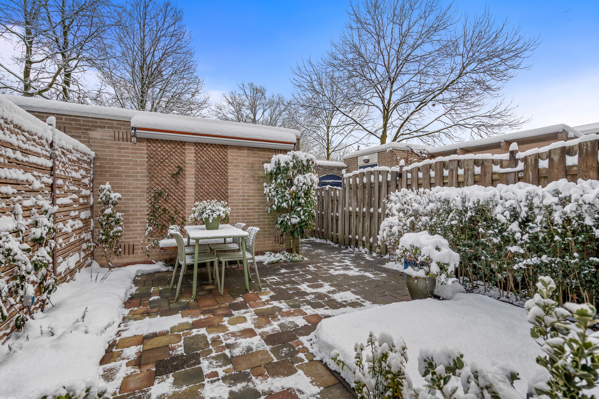 De achtertuin ligt gunstig op het zuidoosten en is strak, onderhoudsarm én sfeervol aangelegd. Je geniet hier vanaf de ochtend van de zon. Achterin de tuin staat een stenen berging voor fietsen en opslag. Het buitenschilderwerk van de hele woning is eind 2024 gedaan.