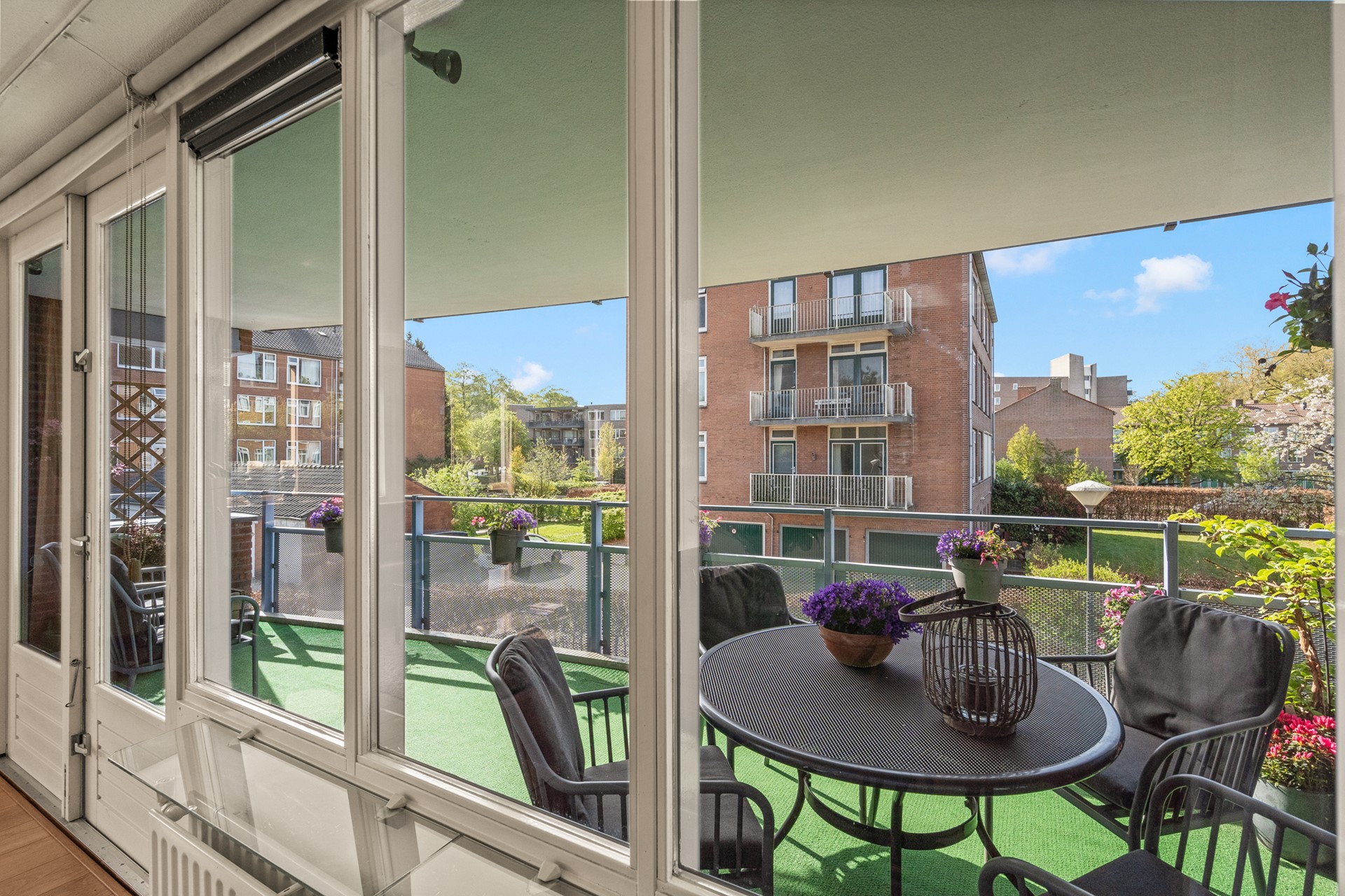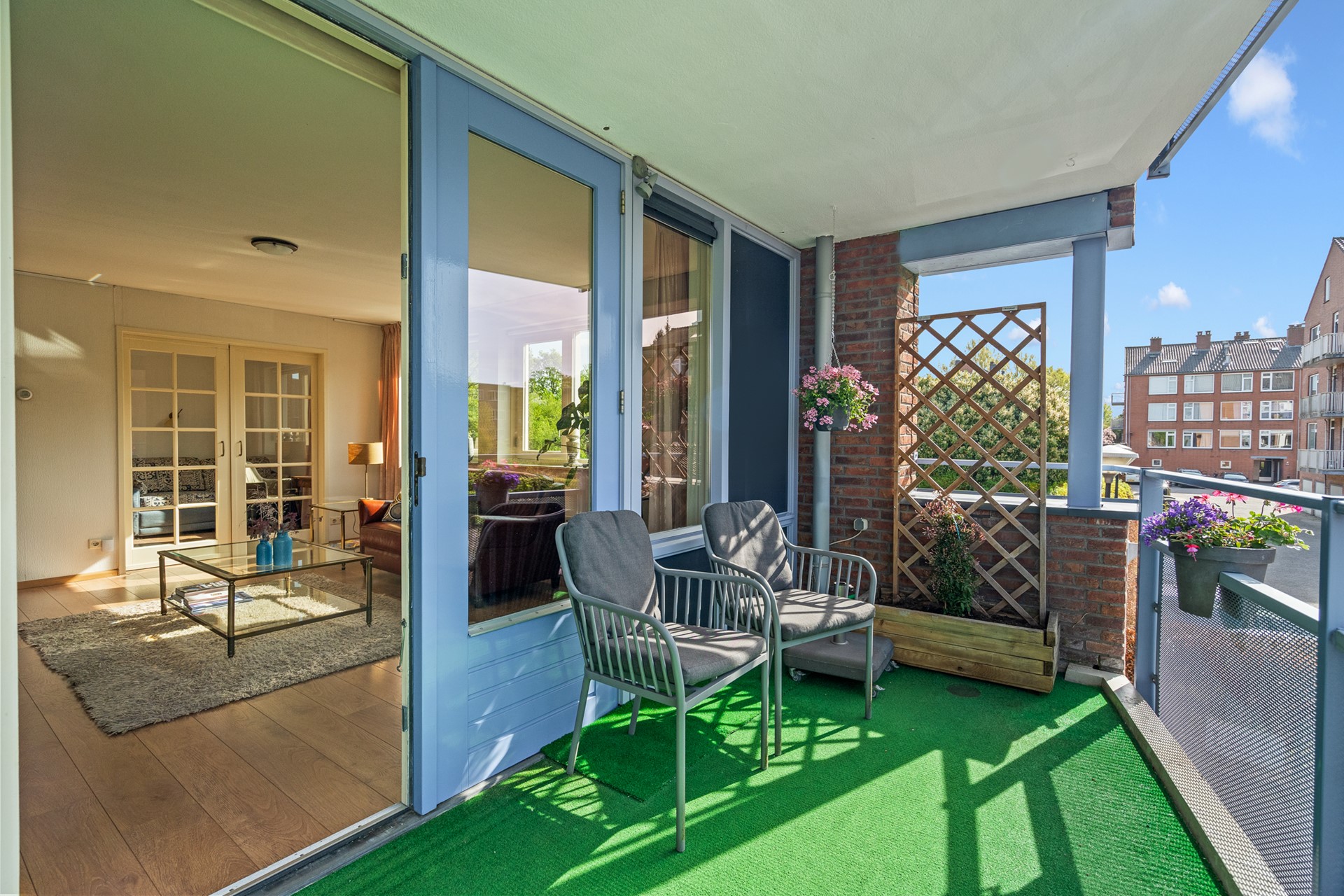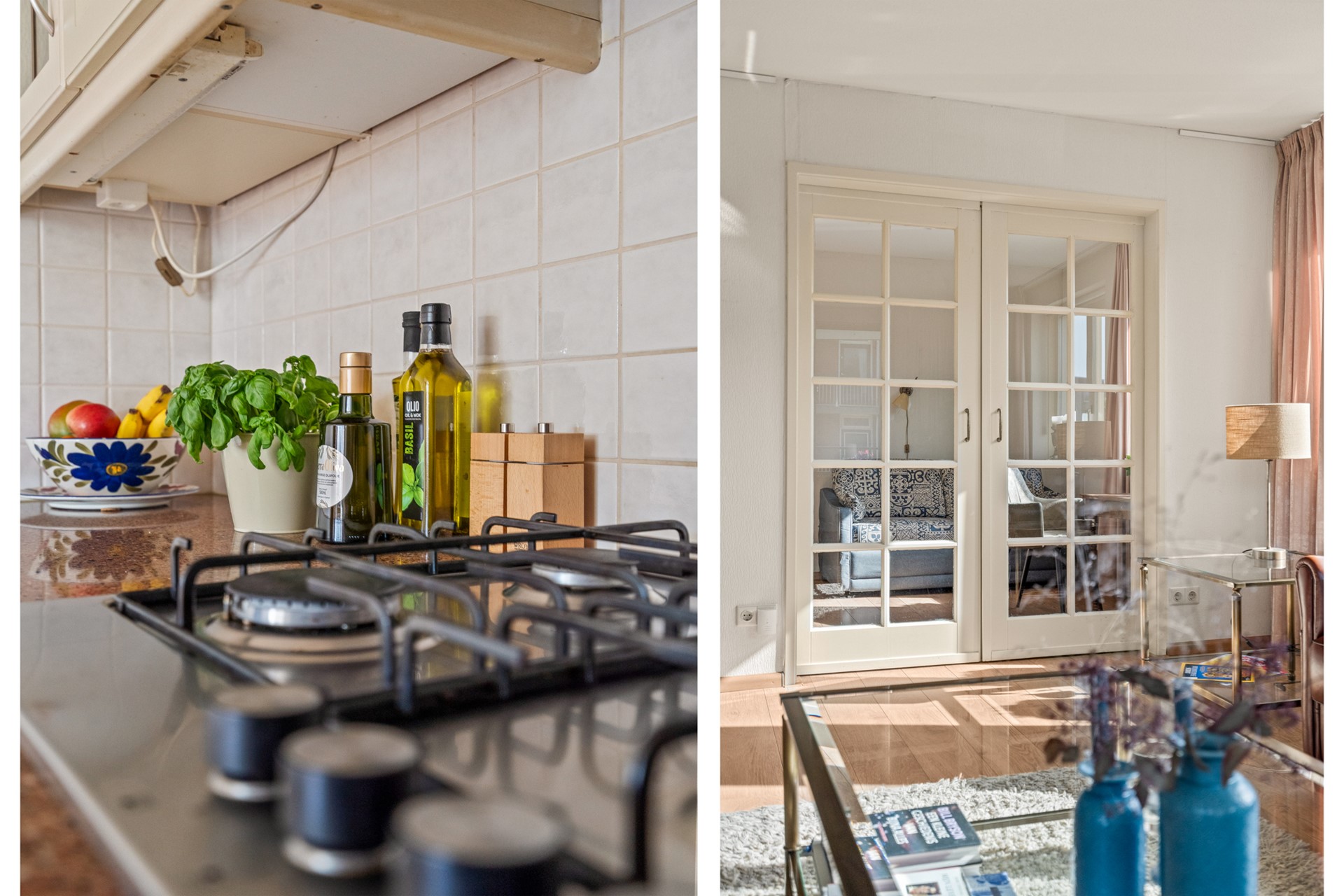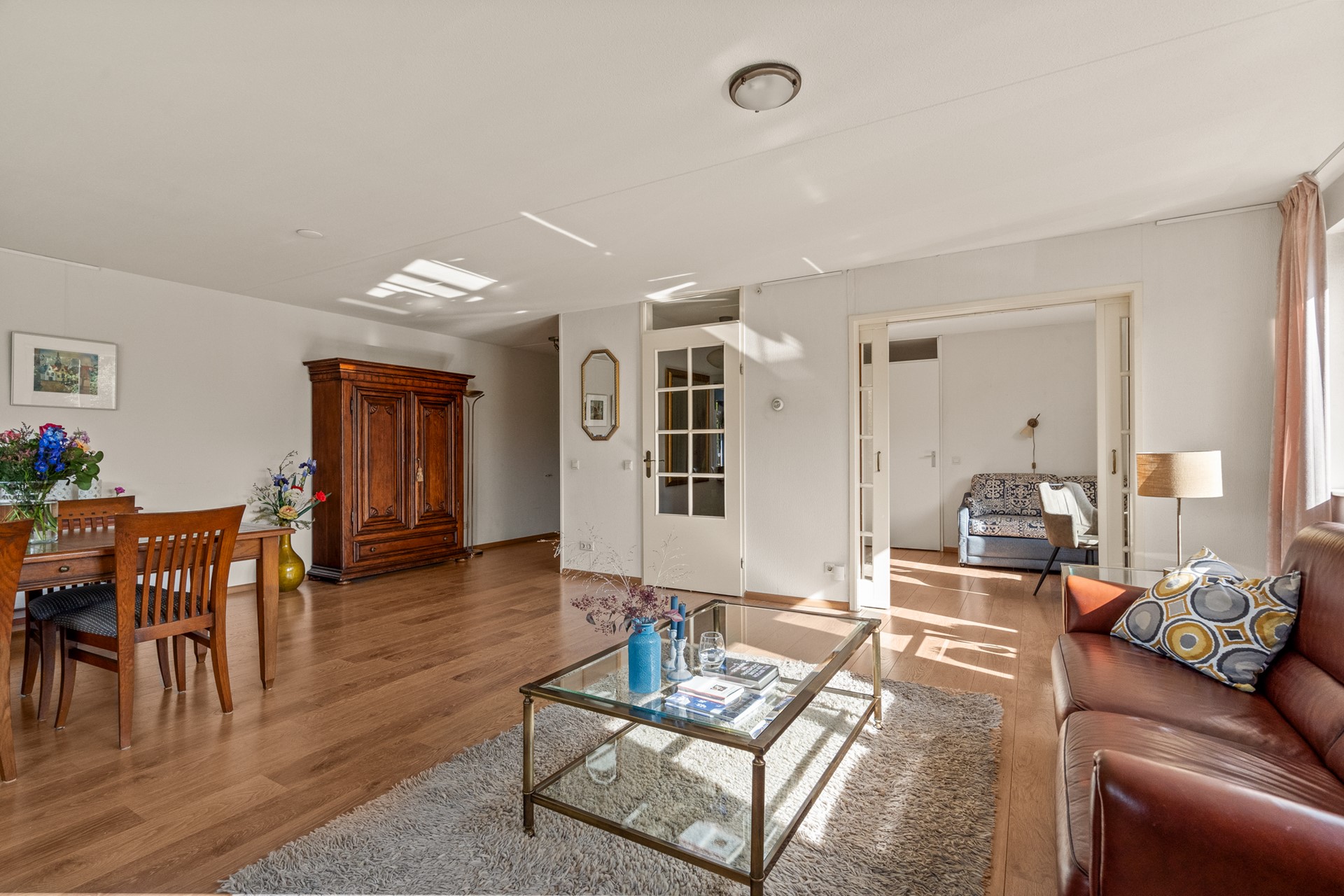 De royale woonkamer vormt het kloppend hart van het appartement. Dankzij de grote ramen en de openslaande deuren naar het overdekte balkon valt er volop daglicht naar binnen. De ideale zonligging van het appartement op het zuiden maakt dat je heerlijk buiten kunt zitten op het overigens zeer ruime balkon. Een plek waar je direct een gevoel van thuiskomen ervaart – ontspannen op de bank, genietend van het uitzicht.