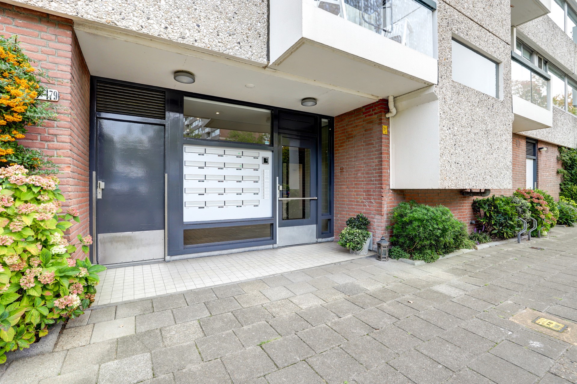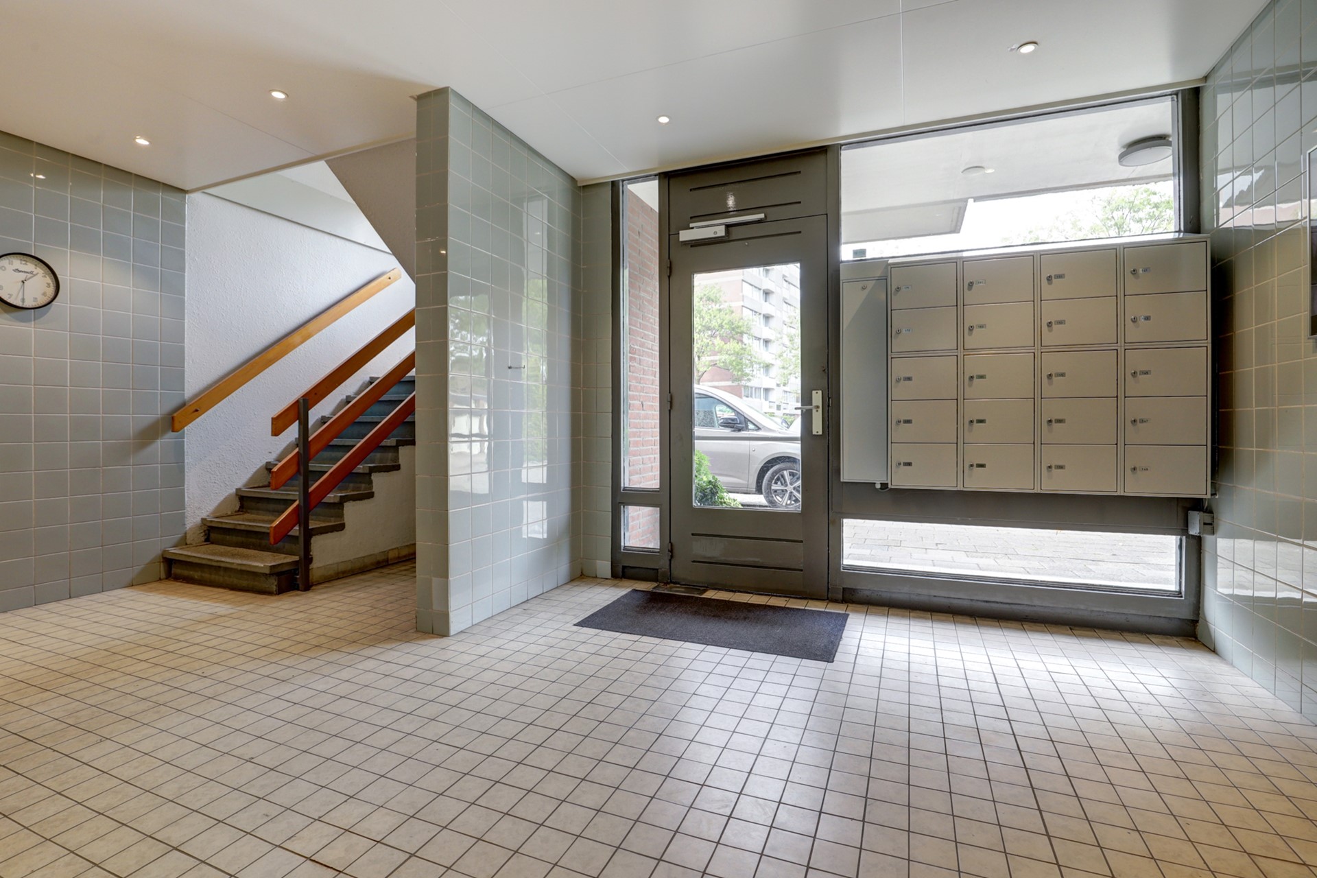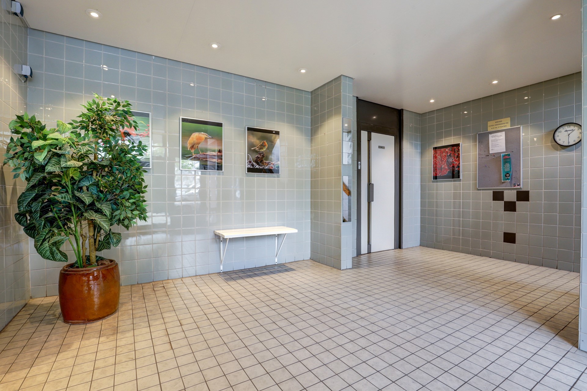 Centrale ingang met intercom en brievenbussen op de begane grond. Via de lift of het trappenhuis is het appartement op de negende verdieping te bereiken.