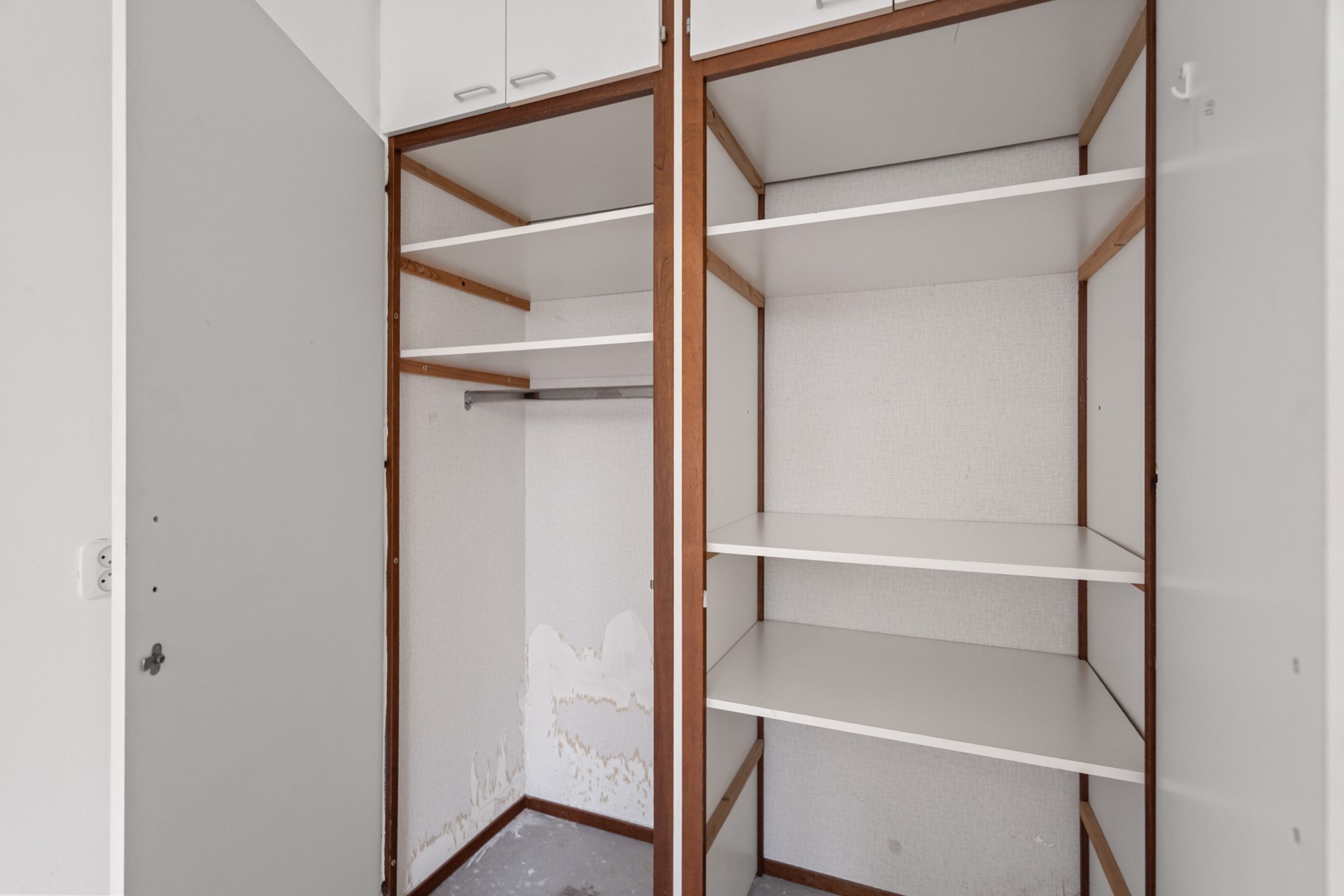 Aan weerszijden van de hal bevinden zich twee slaapkamers van verschillend formaat – ideaal als hoofdslaapkamer en werk- of logeerkamer. De badkamer is netjes gerenoveerd en beschikt over een douche en wastafel. Daarnaast is er een separaat toilet en een inpandige berging met wasmachineaansluiting.