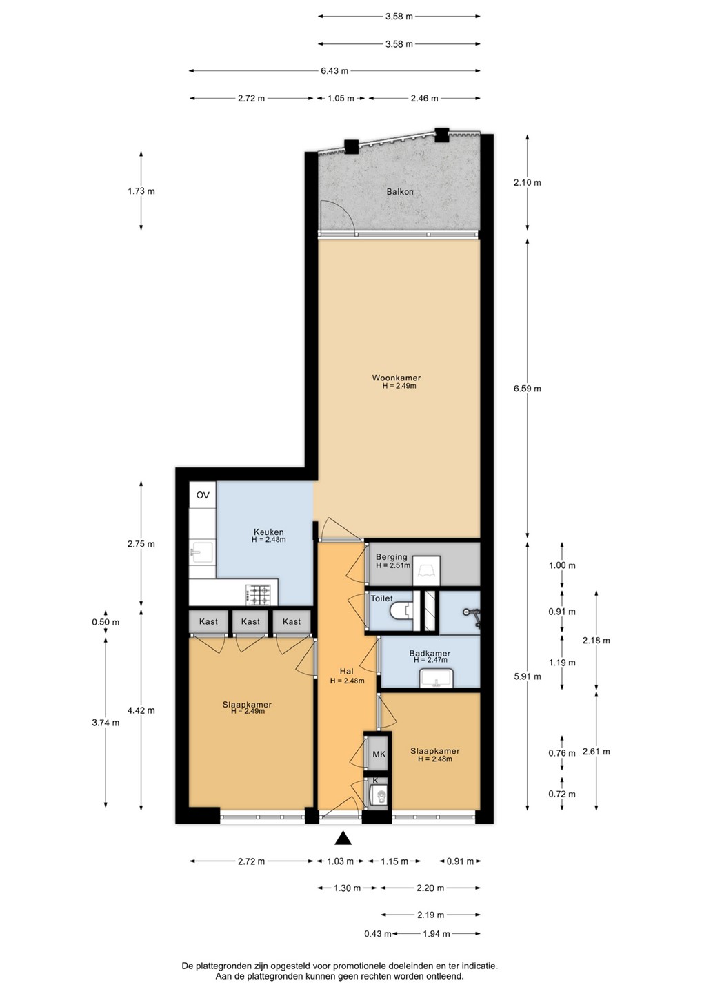Via de centrale entree met brievenbussen, intercom, lift en trappenhuis bereikt u de woning. In het souterrain beschikt u over een eigen, afsluitbare berging.