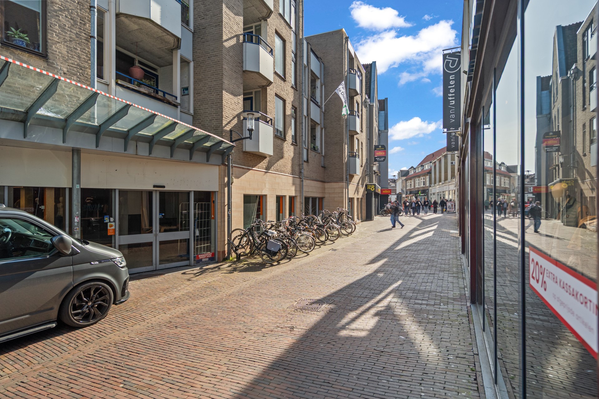 Binnenkomst in het appartement is via een ruime hal die toegang geeft tot alle vertrekken. De royale woon- en eetkamer valt direct op door de grote raampartij, die zorgt voor een prettige lichtinval. Vanuit de woonkamer stapt u het inpandige balkon (loggia) op. Hier geniet u beschut van uw ochtendkoffie met uitzicht op de Onze Lieve Vrouwetoren en het gezellige plein.