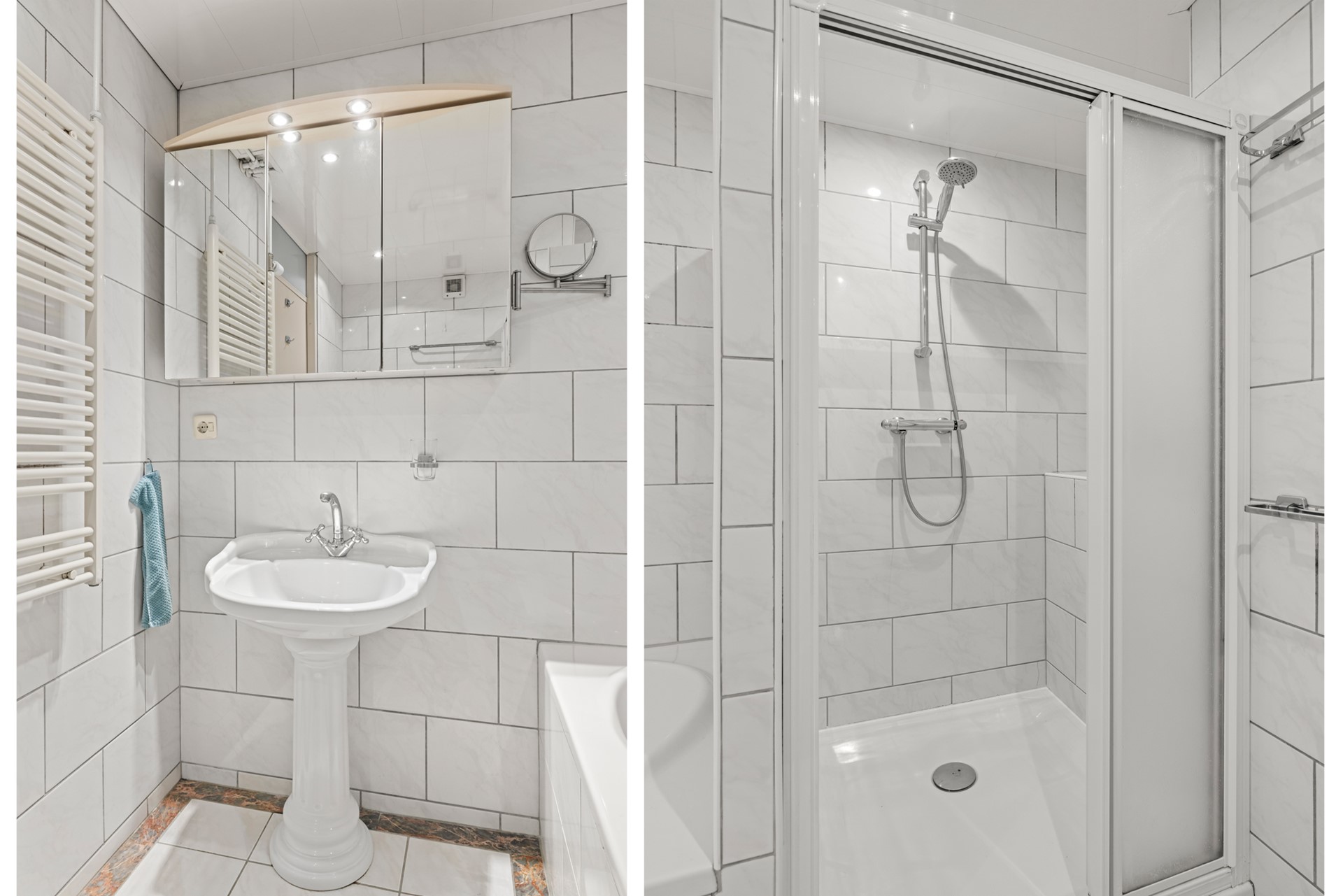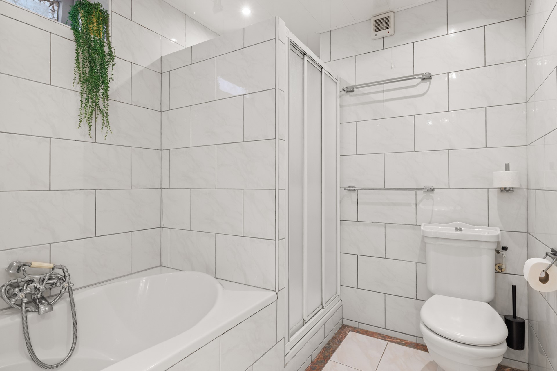 Op de eerste verdieping bevindt zich de overloop met cv-kast. Vanaf hier zijn drie goed bemeten slaapkamers bereikbaar, waarvan één is voorzien van een vaste inbouwkast. De badkamer is compleet uitgevoerd met een wastafel, ligbad, toilet en aparte douchecabine.