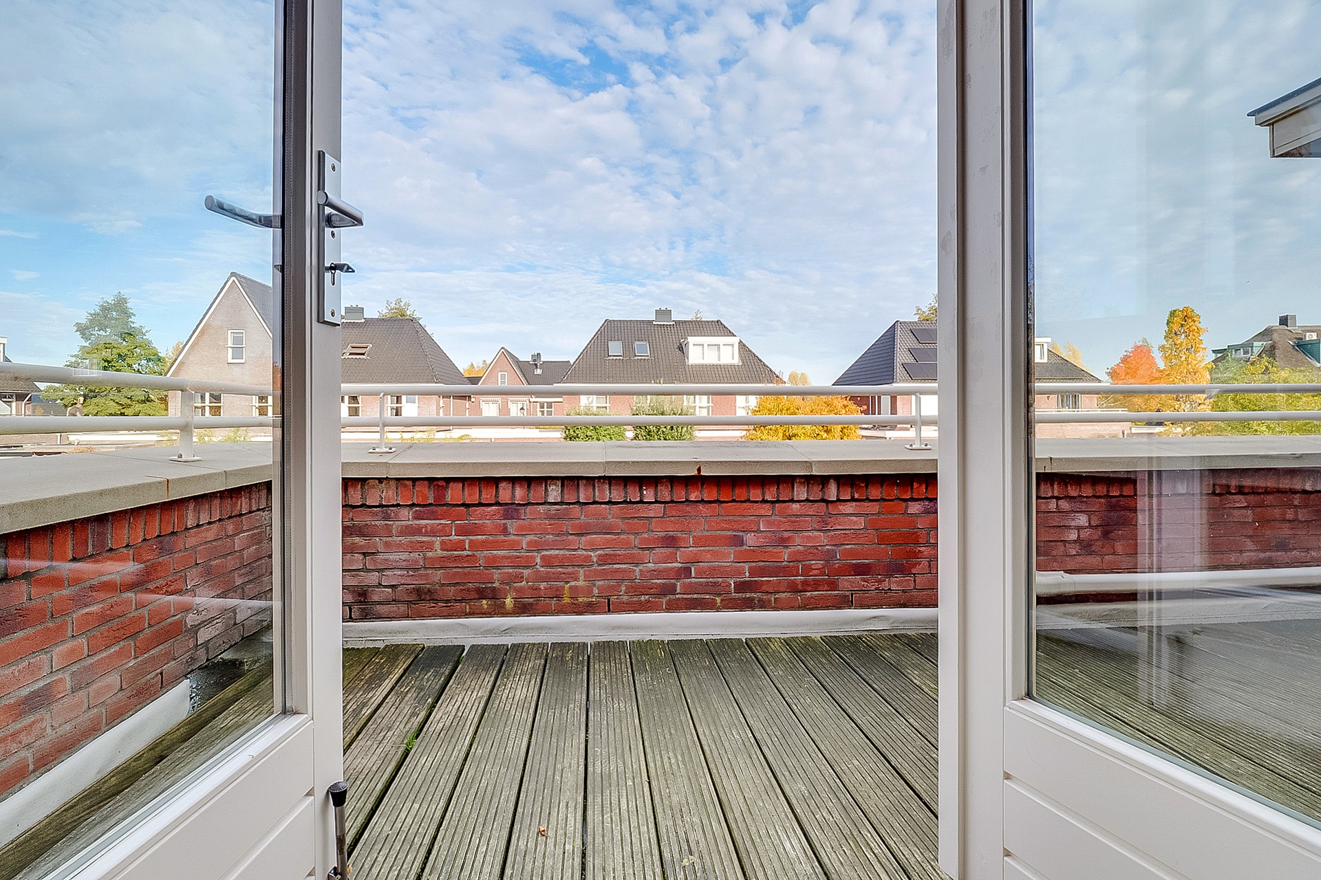 De eerste verdieping telt drie slaapkamers, een complete badkamer en een aparte toiletruimte. De ouderslaapkamer heeft openslaande deuren naar een balkon over de volle breedte van het huis, met uitzicht op de tuin.