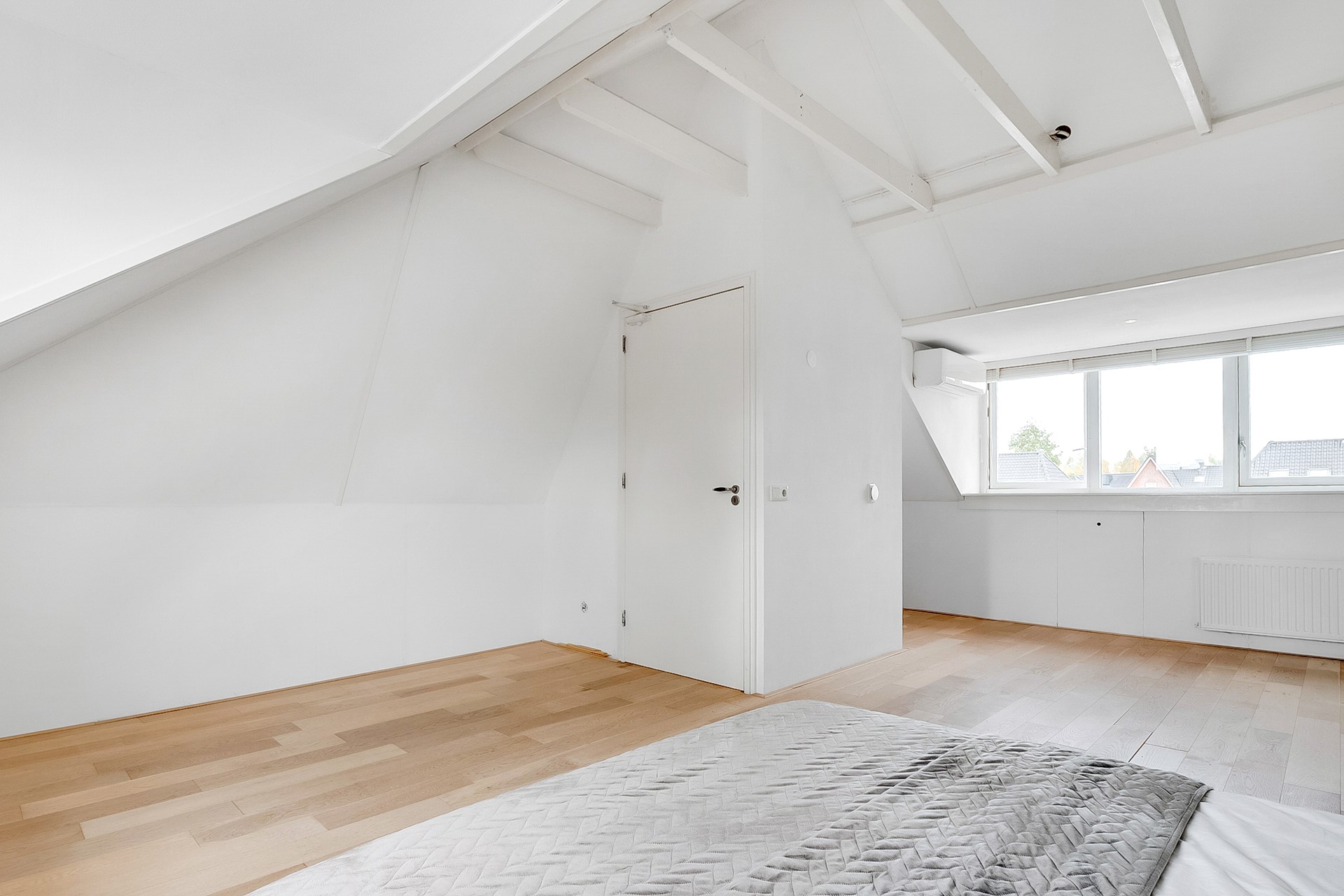 De tweede verdieping is ingericht als ruime slaap- of werkkamer met twee dakkapellen en een pantry. Deze ruimte is eenvoudig te verdelen in twee volwaardige kamers – ideaal voor opgroeiende kinderen of een thuiskantoor. Ook hier is volop bergruimte aanwezig.