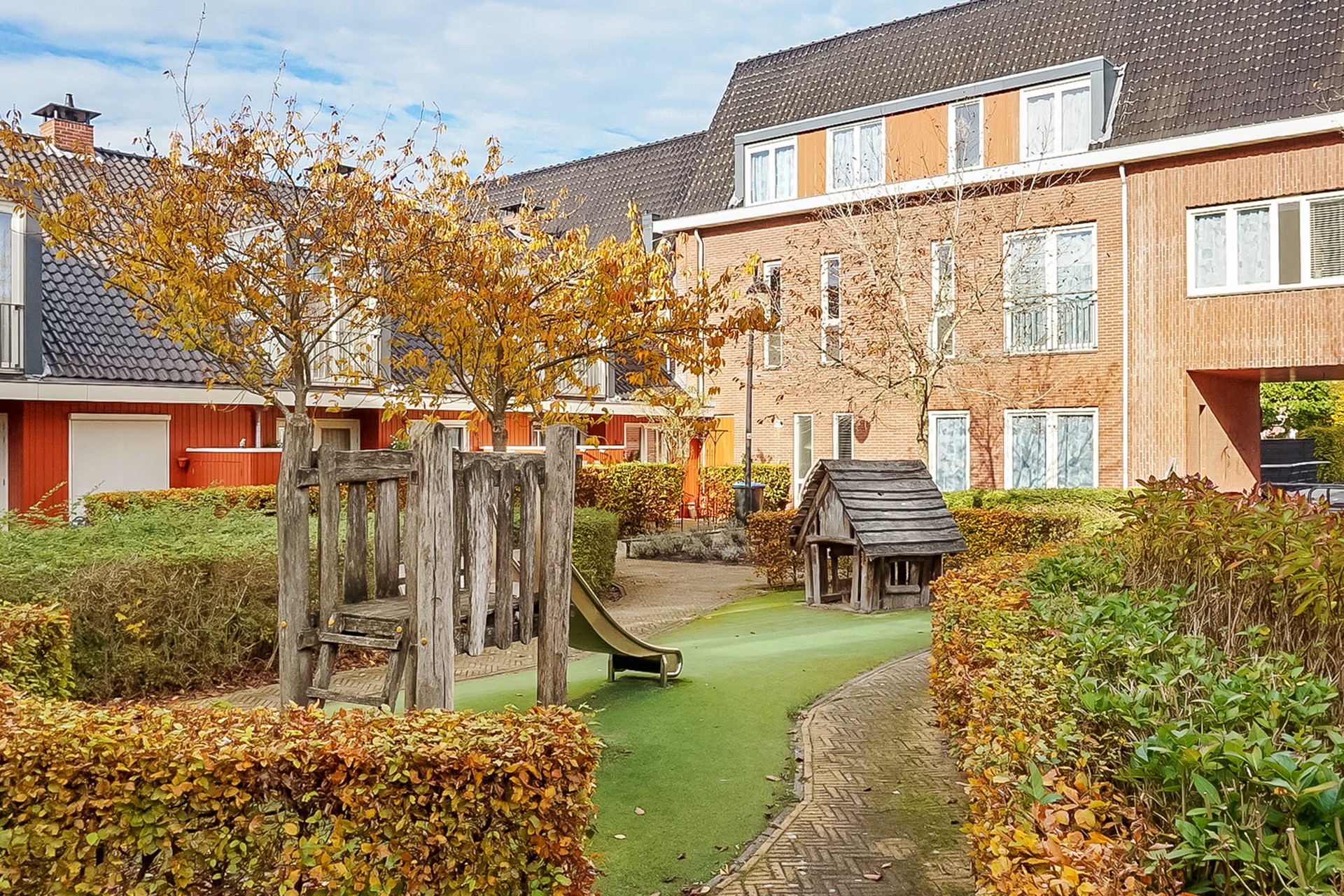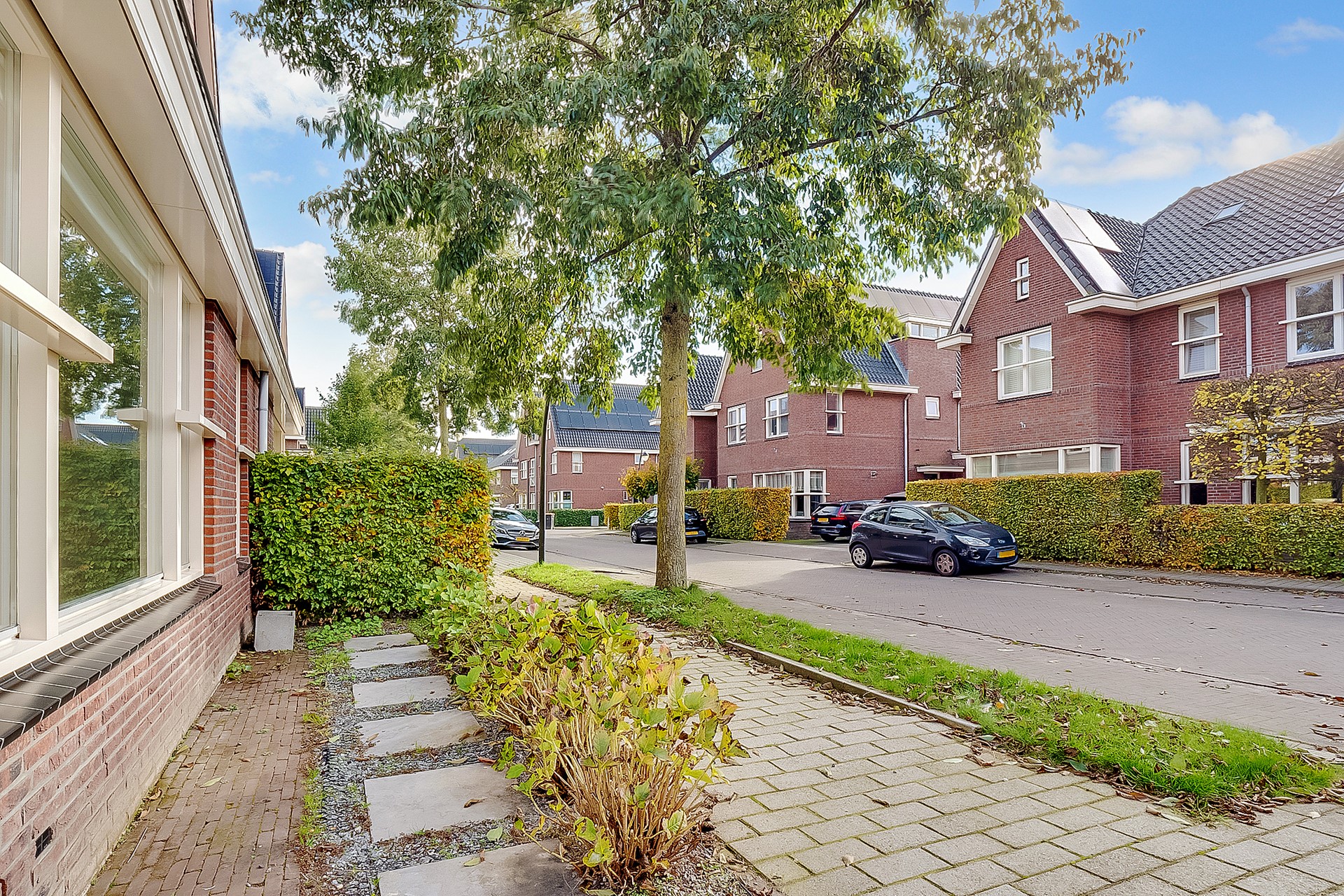 Je parkeert op eigen terrein, met daarnaast ruimte voor fietsen en kliko’s. Ook in de straat is voldoende parkeergelegenheid. De woning ligt aan een rustige, doodlopende straat waar kinderen veilig buiten kunnen spelen.