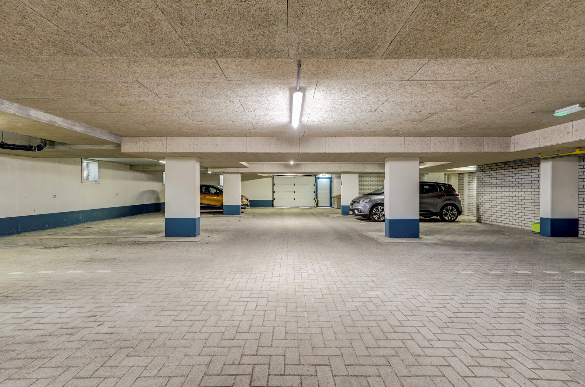 In de afgesloten parkeerkelder beschik je over een eigen parkeerplaats en een separate berging. De parkeergarage is bereikbaar via de lift of trap, en voorzien van een op afstand te bedienen garagedeur.